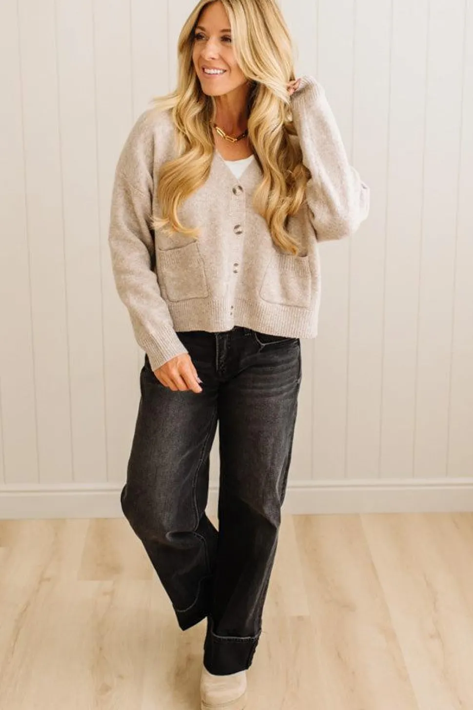 Ready to simplify your daily outfit decisions? Add the Amy Button Front Cardigan to your wardrobe for effortless versatility that solves the layering puzzle once and for all. Shop now at our boutique.