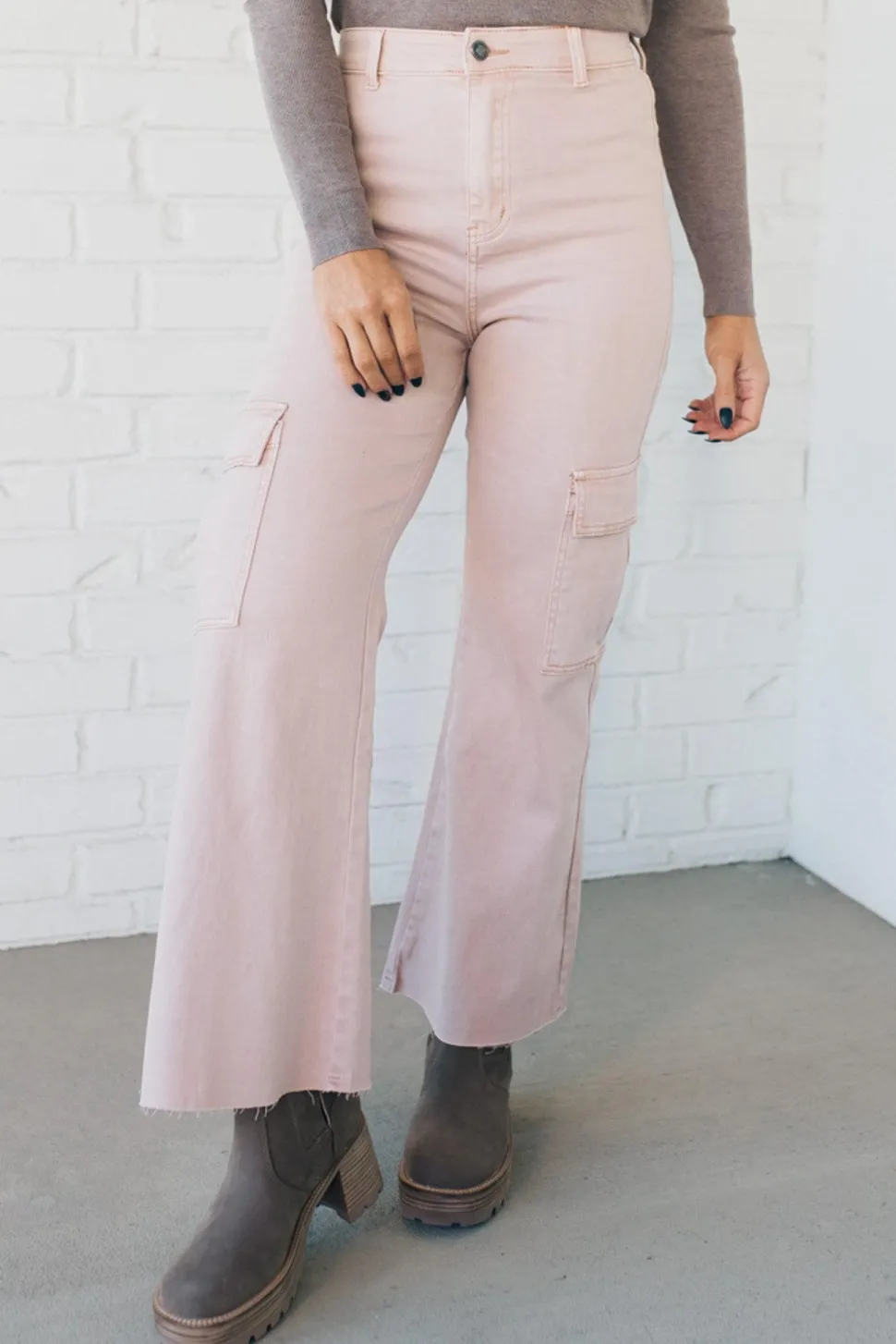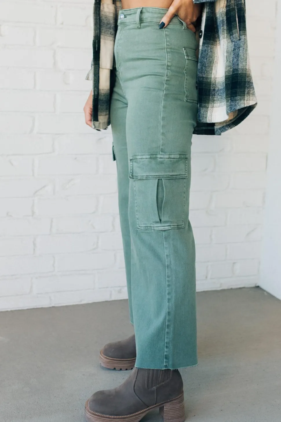 Experience superior comfort and style with Arden High Rise Stretch Cargos. Soft, stretchy fabric provides a form-fitting shape, while the ultra high rise and scissor cut hem create a modern silhouette. Secure your essentials in cargo pockets on the side. Move gracefully with confidence.
