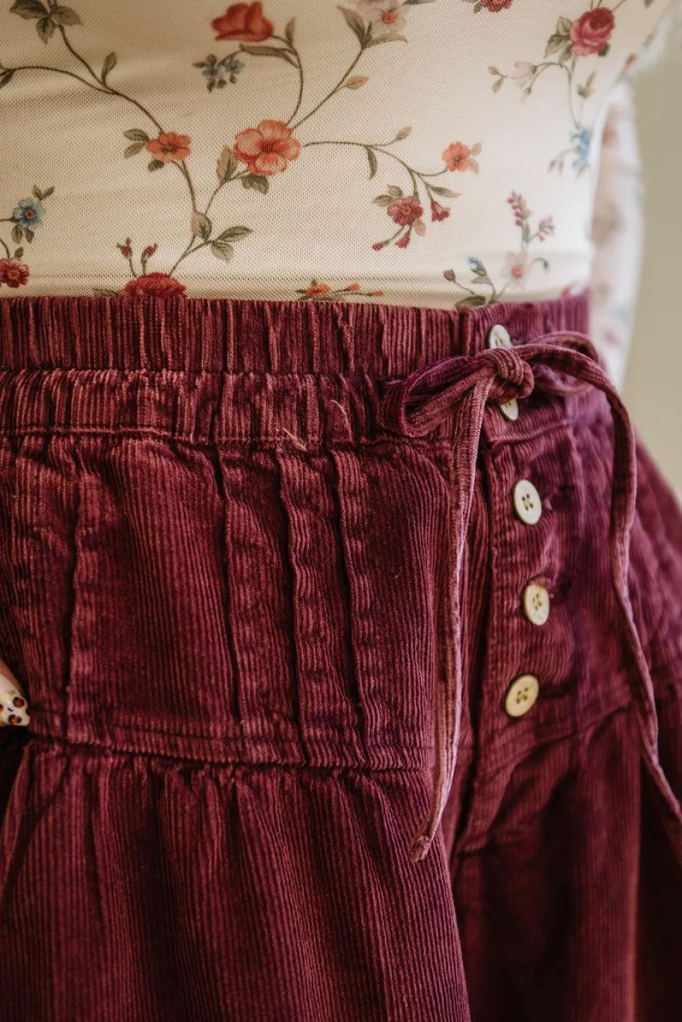 The Betty Pants are that rare mix of relaxed and refined. Made from 100% cotton, mineral-washed corduroy, they have a worn-in vintage vibe with thoughtful details—pin tuck seams, button-front styling, and a wide-leg silhouette that moves. The elastic waist and adjustable drawstring make them ultra wearable (aka Thanksgiving-dinner approved), while the deep pockets mean you can actually leave your bag behind.