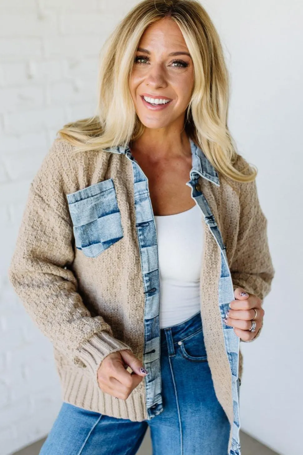 - Unlike plain knit cardigans that can look too casual, the denim accents give you a polished edge that works for both errands and casual Fridays at work