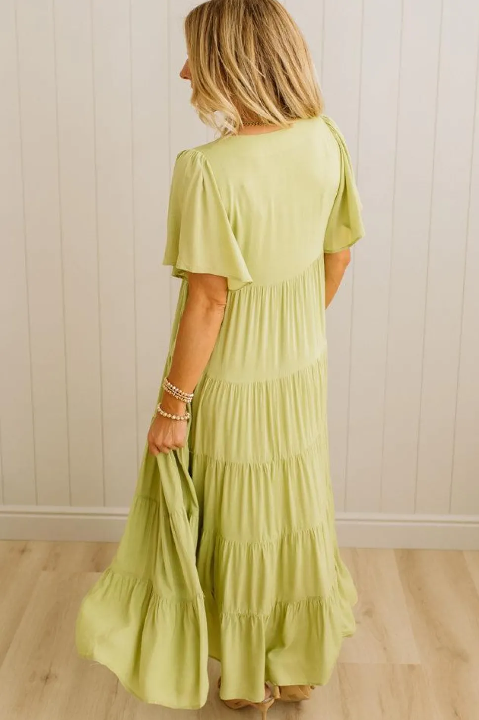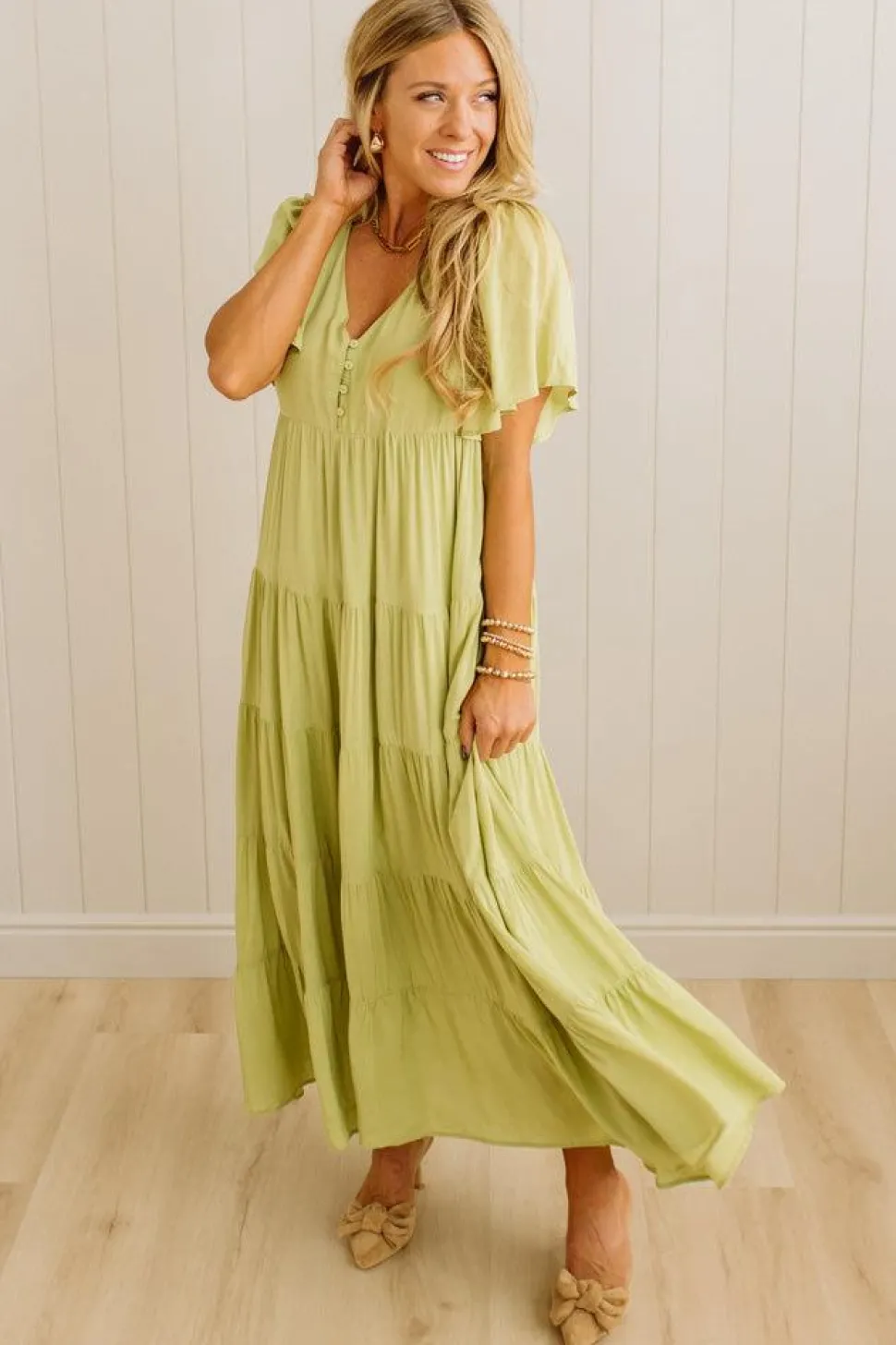 Perfect for busy women who need comfortable, versatile pieces that transition from morning errands to evening gatherings without a second thought. The Emmi Tiered Maxi Dress in soft matcha green gives you an effortlessly polished look that feels as good as it looks, solving the daily struggle of wanting to look put-together while staying comfortable all day long.