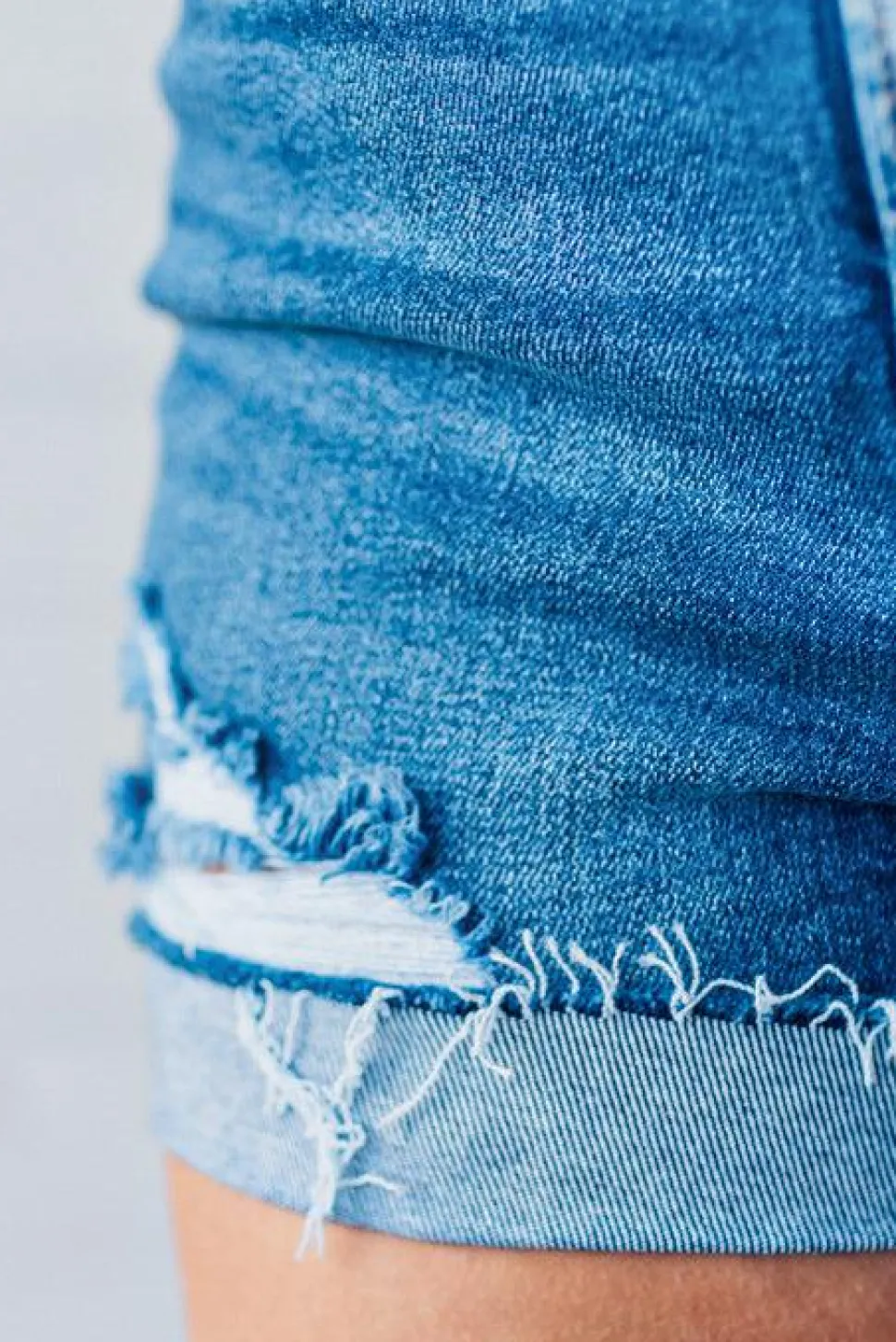 These mid-rise distressed shorts have edgy destruction details, frayed hem and the perfect amount of stretch for maximum comfort. Additionally equipped with five pockets, belt loops and a zip fly closure.