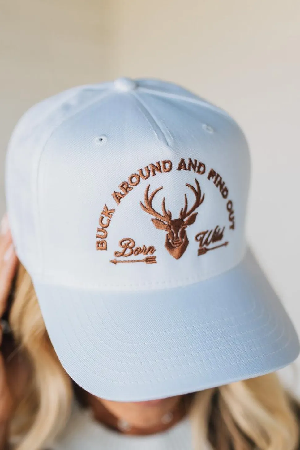 - Embroidered “Buck Around And Find Out / Born Wild” logo