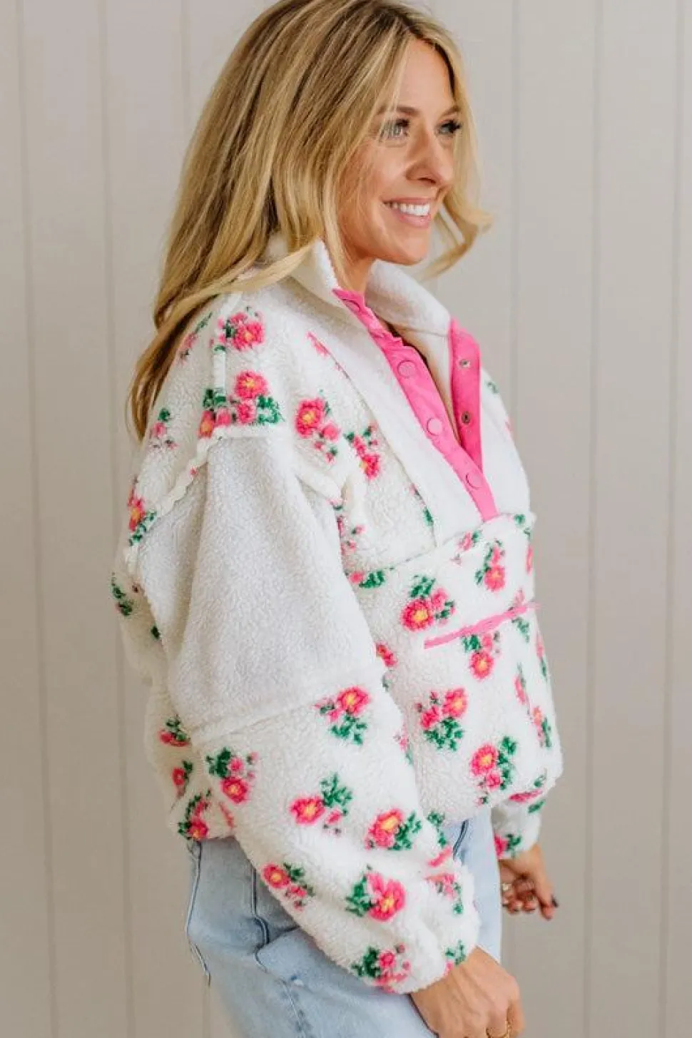 Perfect for busy women and mothers who want cozy comfort without sacrificing style during unpredictable spring days. The Floral Sherpa Pullover combines playful prints with practical warmth, giving you an easy layer that looks intentional whether you’re rushing through errands or meeting friends for brunch.