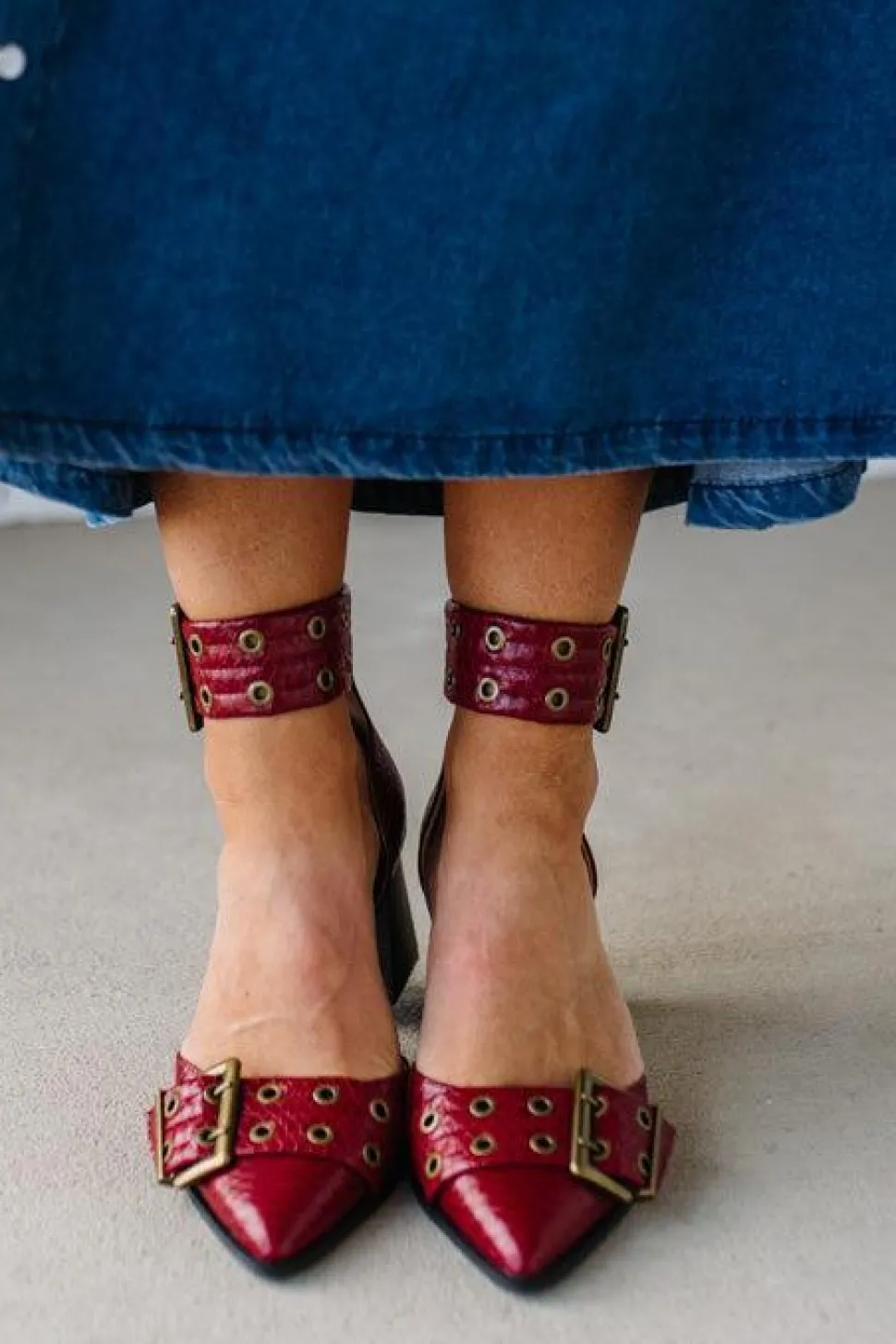Made for main character moments. The Gracie Heels are bold, confident, and definitely not here to play it safe. With fierce gold grommet buckles, a sculpted pointed toe, and ankle straps that serve statement and security, these heels bring boss energy to everything from date nights to desk days.