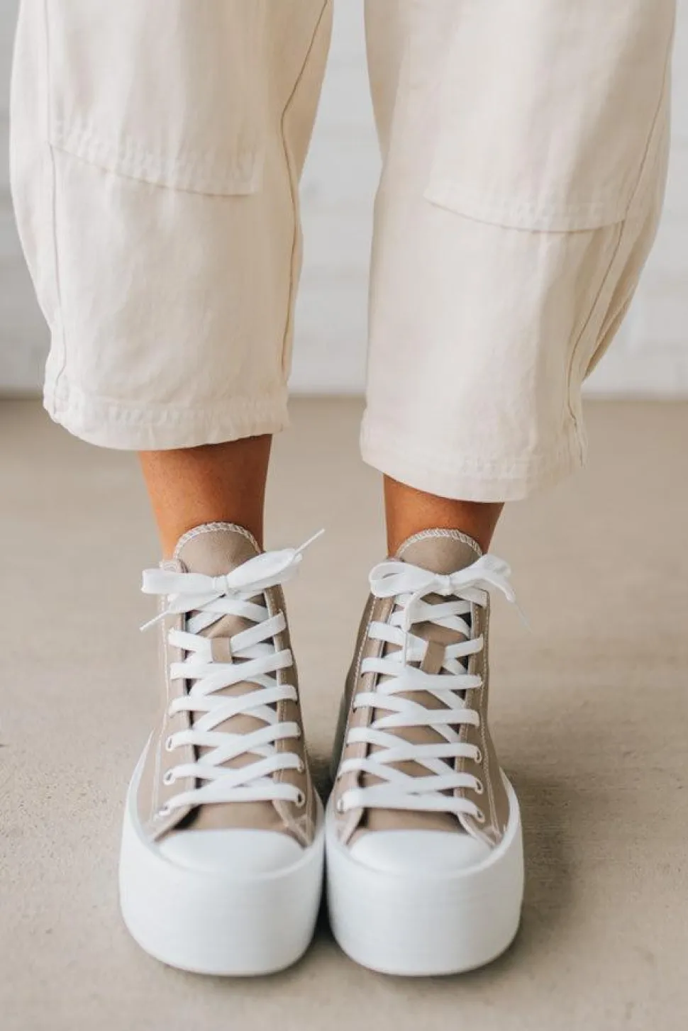 The warm taupe canvas pairs effortlessly with your whole closet, from joggers to dresses, while crisp white laces and a thick rubber sole keep things fresh and on-trend. Whether you’re brunch-hopping, city strolling, or styling them up with a blazer, these sneakers have that “effortless cool” energy you’ll reach for again and again.