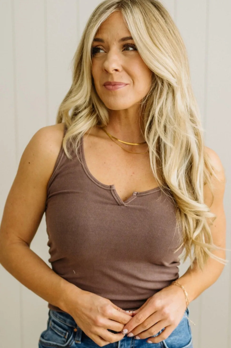 Crafted from a breathable ribbed rayon-spandex blend, it hugs just right without clinging, and the notched neckline adds a little visual interest to your usual tank rotation. High enough for great coverage, fitted enough to feel polished, and comfy enough to nap in.
