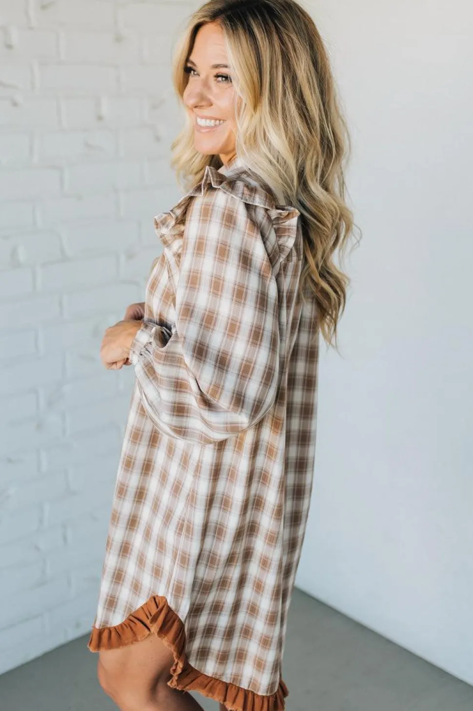 She’s part prairie romance, part rodeo-ready, and fully made for fall. The Jonnie Plaid Ruffled Accent Shirt Dress brings a soft, flirty spin to classic country with its lightweight drape, high-low hemline, and contrast ruffle trim that adds just the right twirl.Whether you’re heading to the pumpkin patch, rodeo night, or lining up for cider with the fam, Jonnie’s got that photogenic magic. Styled with boots and a hat? Swoon.