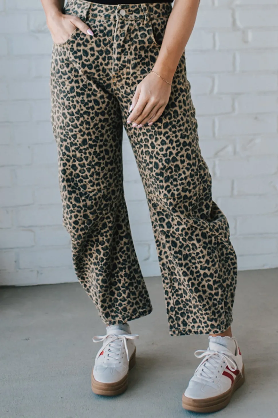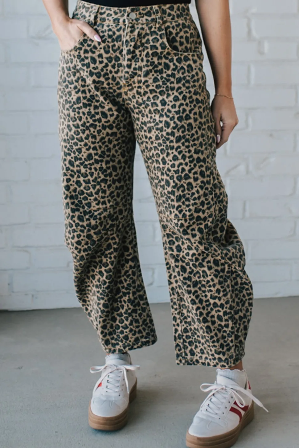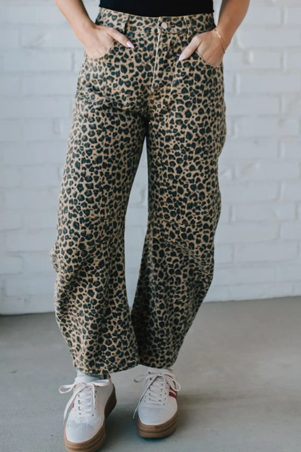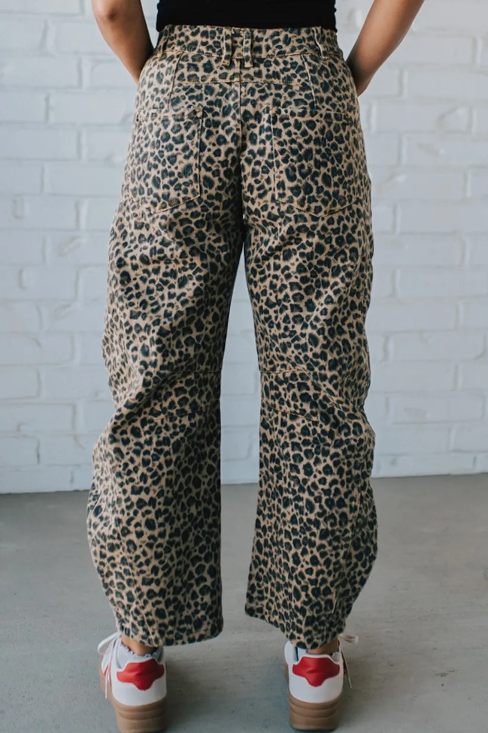 Unleash your wild side with our Leopard Barrel Jeans. These low-rise pants feature a fierce leopard twill fabric for a unique twist on traditional jeans. Embrace your inner fashion predator in style!