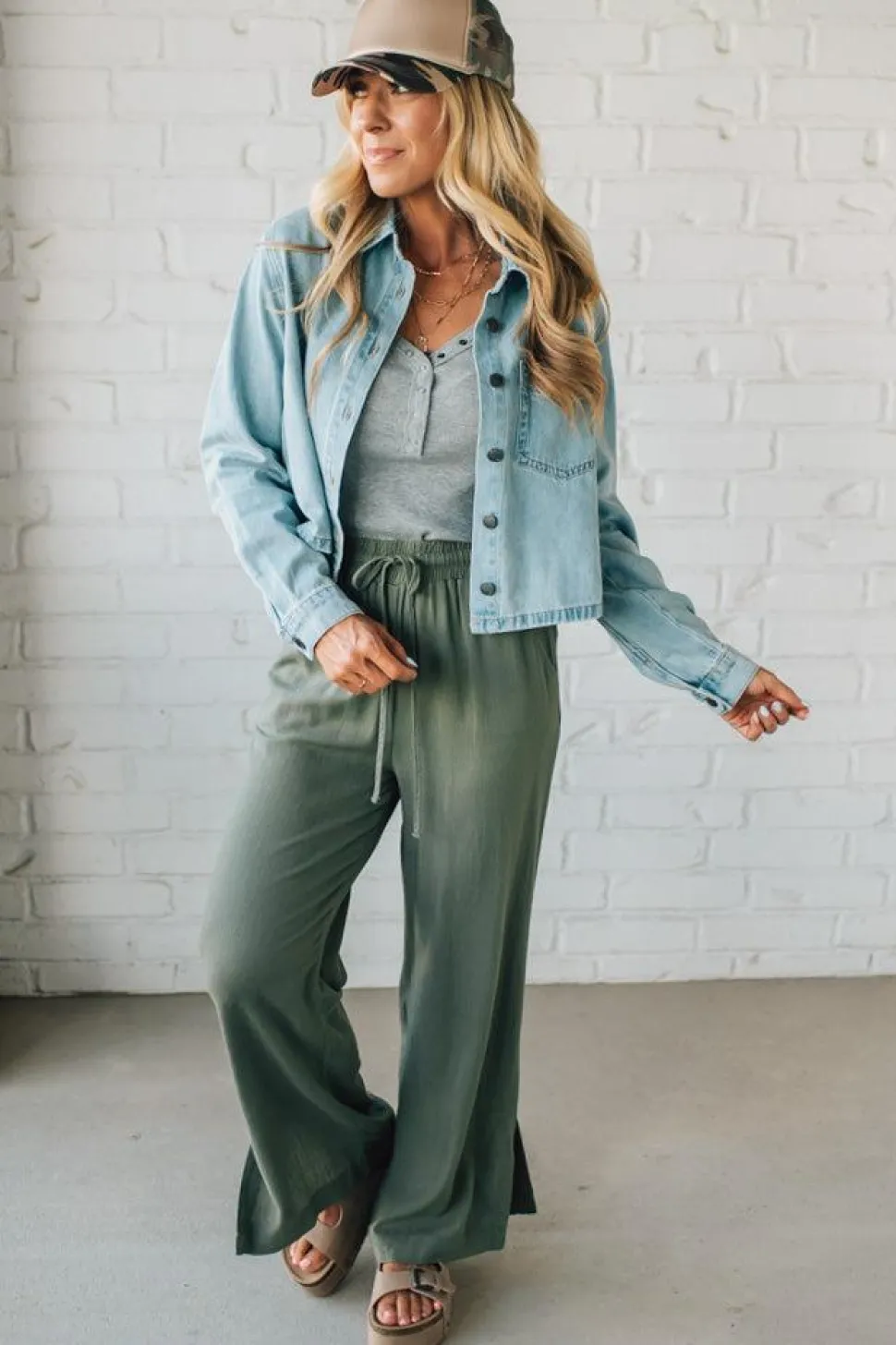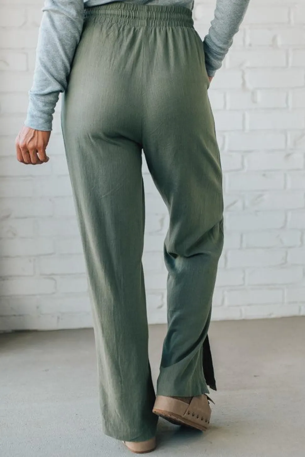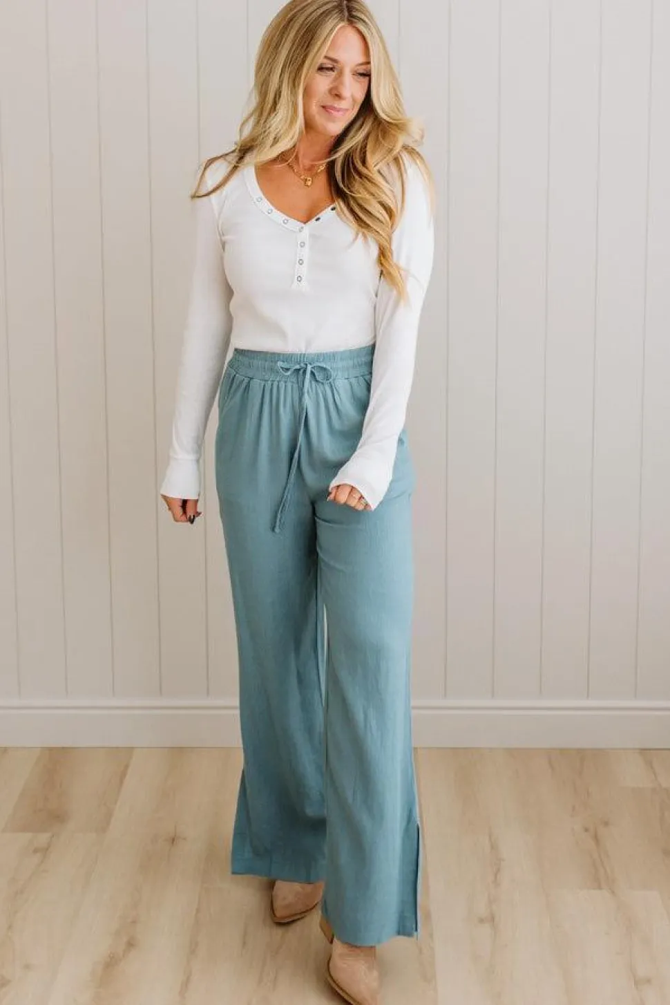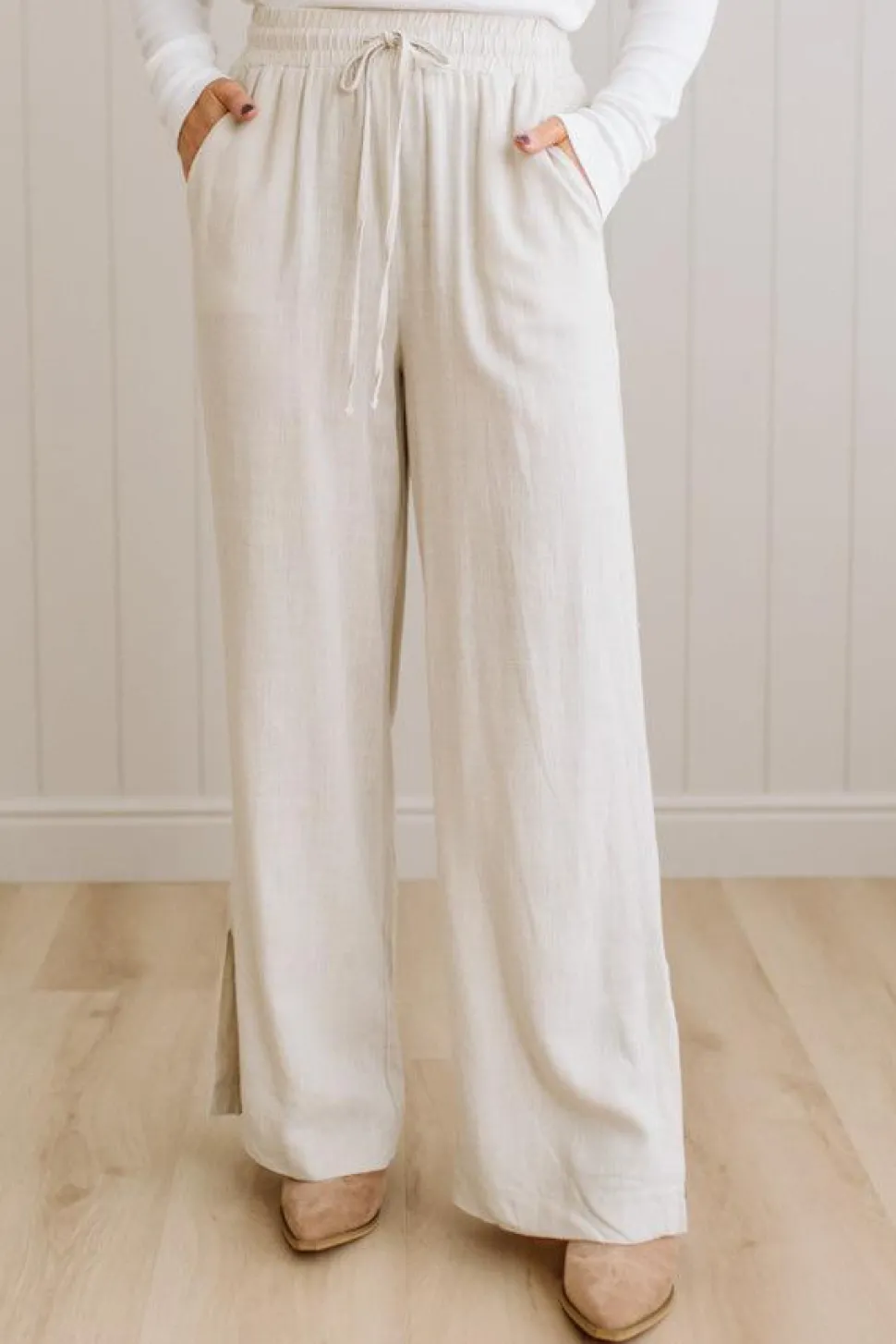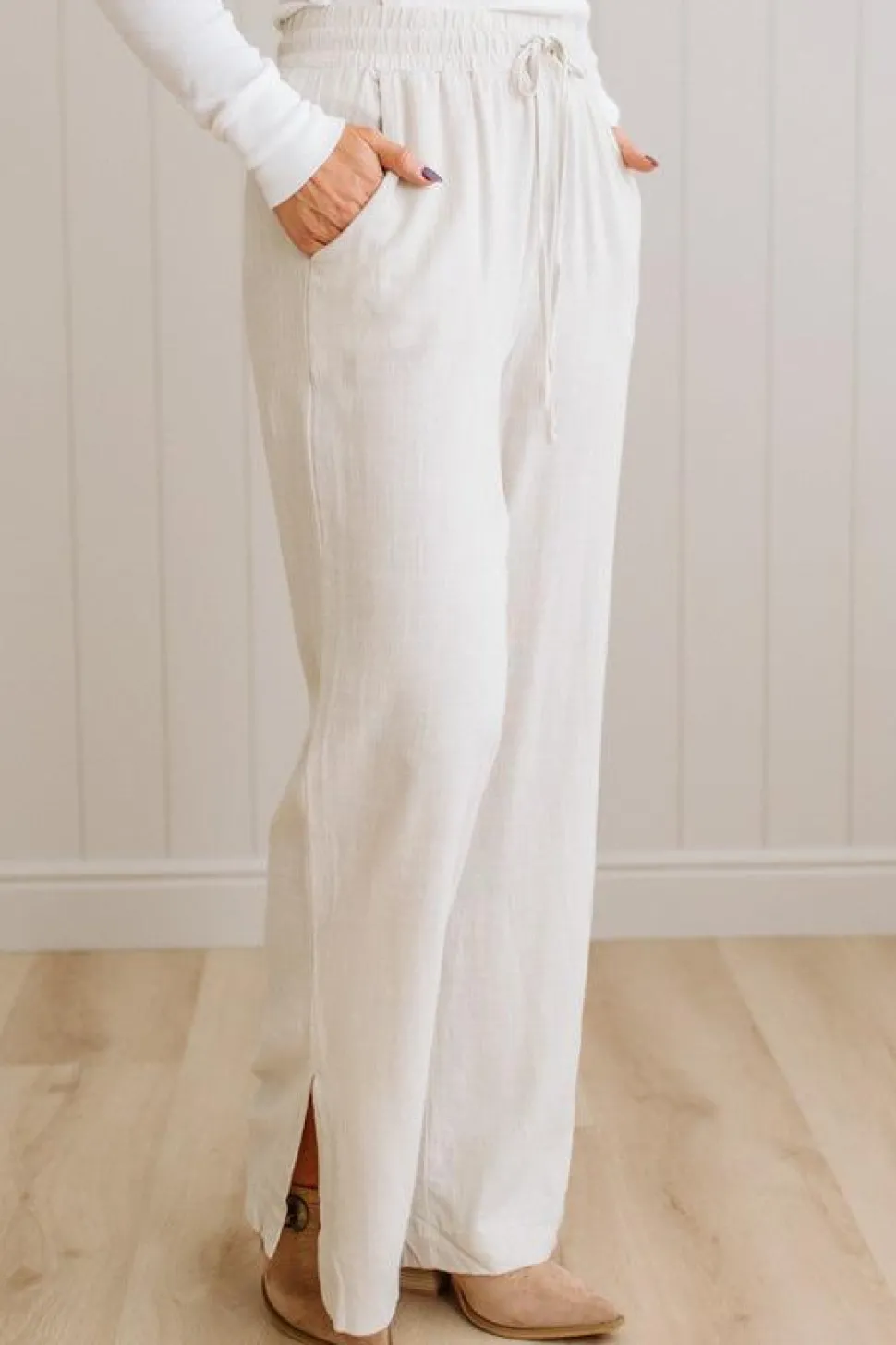 Made for Movement + Moments! Weekend mornings. Slow coastal strolls. That in-between season where the breeze has just the right chill. These are the pants you’ll wear on repeat—from the airport to the pumpkin patch. The Linen Blend Drawstring Pants are the definition of laid-back polish. Designed in a soft, breathable linen blend with a wide leg and subtle side slits, they move with you—never against you. The wide elastic waistband with drawstring lets you find your perfect fit, while deep pockets keep it functional (because yes, your phone should fit too).