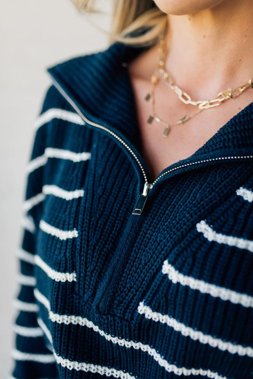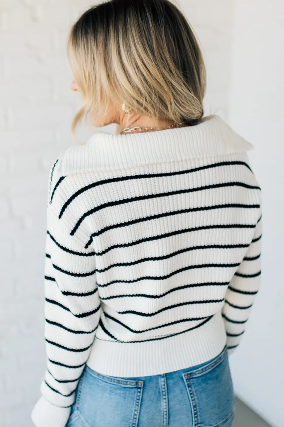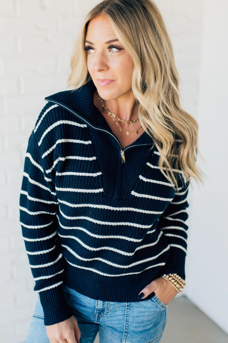 Get ready to strut your style with our Mary Striped Zip Henley Sweater! Featuring a flat lay collar and fine horizontal stripe weave, this sweater is both stylish and comfortable. The silver zipper henley adds a touch of edginess, while the tapered waist and drop shoulder create a flattering silhouette. Perfect for a playful and quirky look!
