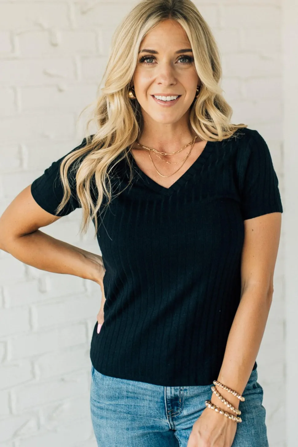 Perfect for adding some trendy flair to your wardrobe! Get ready to rock this Miles Brushed Ribbed V-Neck Tee! With its unique vertical ribbed design and soft brushed finish, this short sleeve V-neck top is guaranteed to be your new favorite. 92% Rayon 8% Spandex