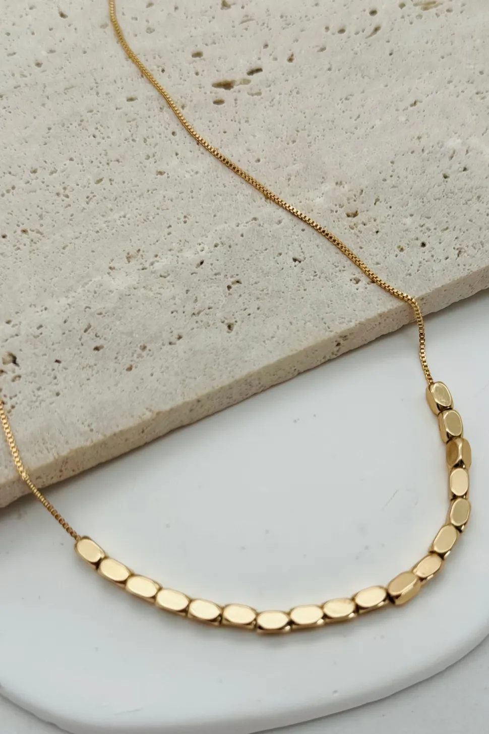 Add some minimalistic charm to your outfit with this beaded necklace! The delicate brass chain and shiny gold or silver plating give it a smooth and stylish finish. Perfect for adding a touch of elegance without being too flashy.