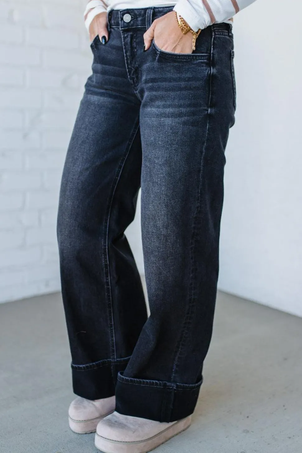 - Cuffed hem adds polish and can be let down for extra length, solving the common problem of wide-leg jeans pooling around your shoes