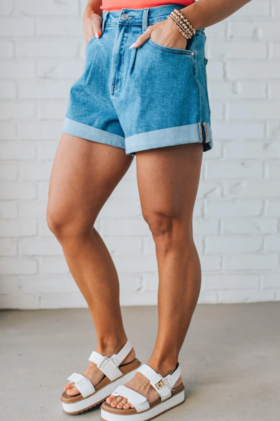 Unleash your playful side with our Piper Pleated + Cuffed Shorts. These denim shorts combine comfort, stretch, and a loose fit for all-day wear. Perfect for any occasion, these shorts will have you looking and feeling your best. Get ready to strut your stuff in style!