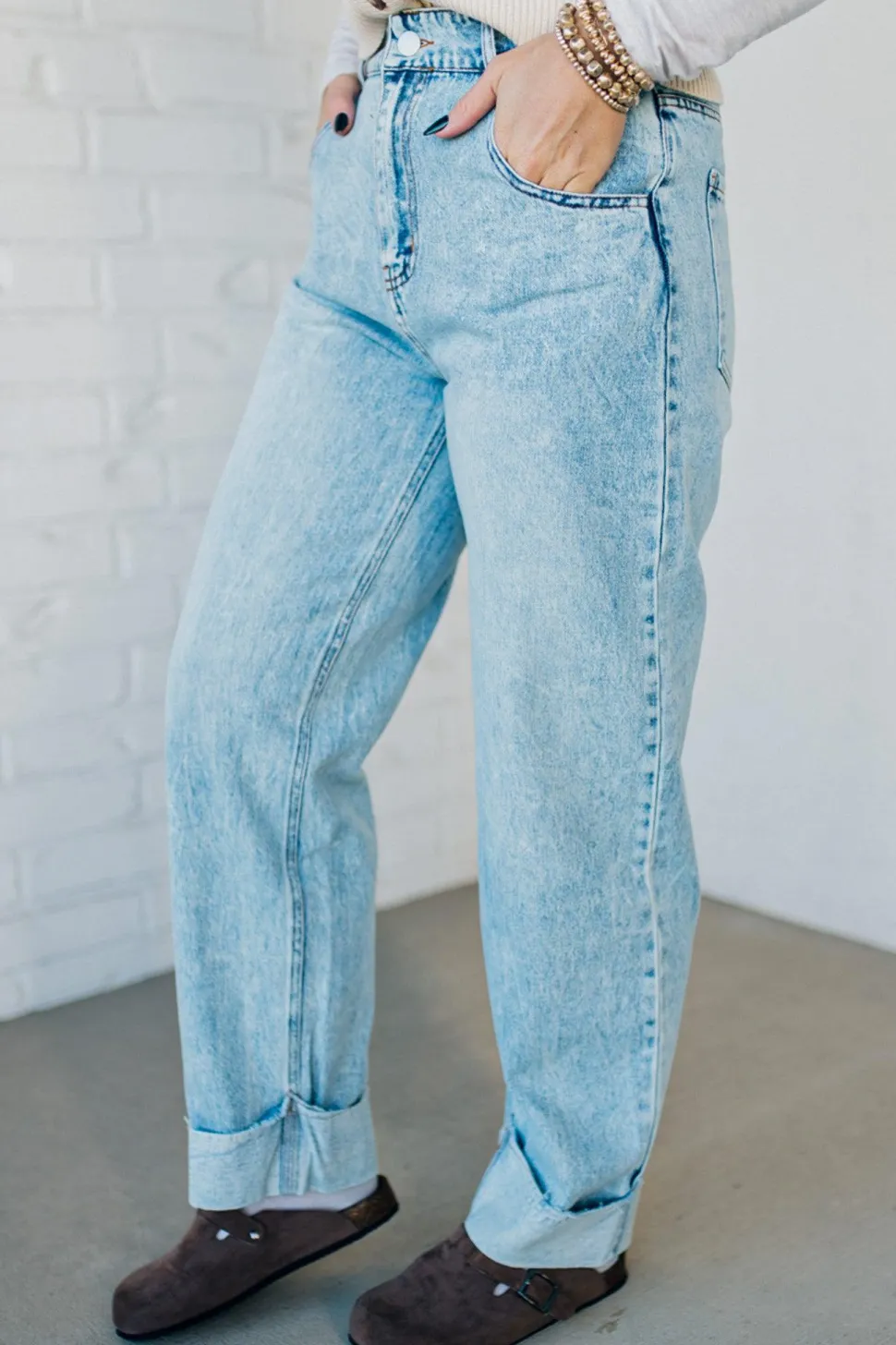 Ditch the boring denim and roll into style with Rhauli Rolled Bottom Barrel Jeans. These acid wash jeans are lightweight and cuffed for maximum comfort, while the subtle barrel fit and light wash add a touch of uniqueness. Time to elevate your denim game with Rhauli!
