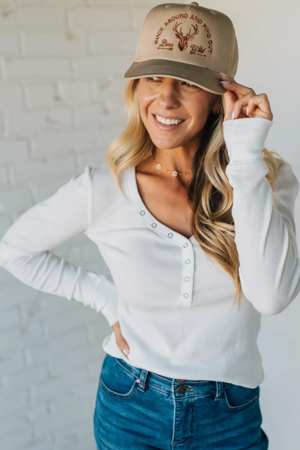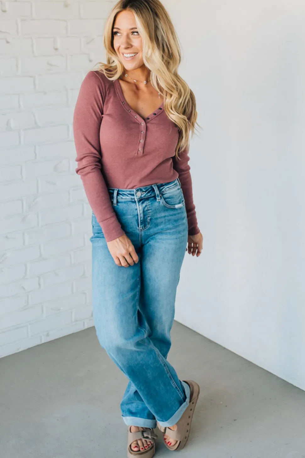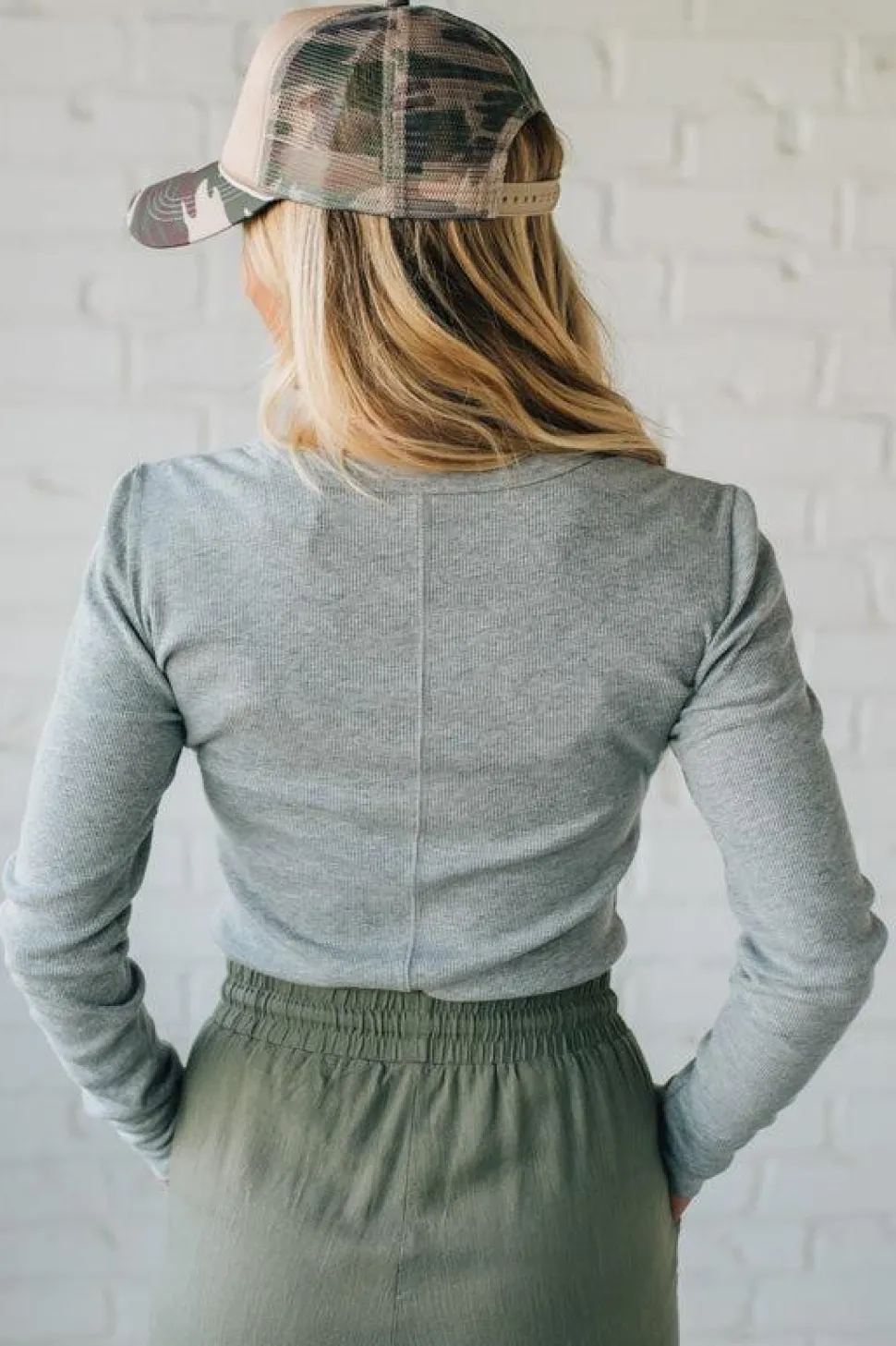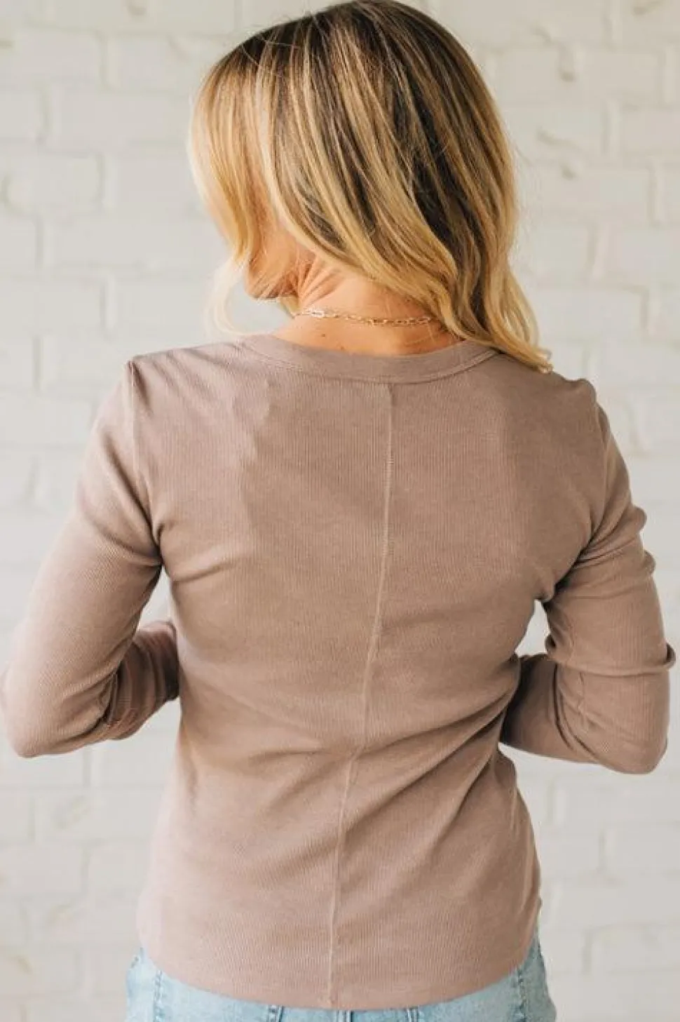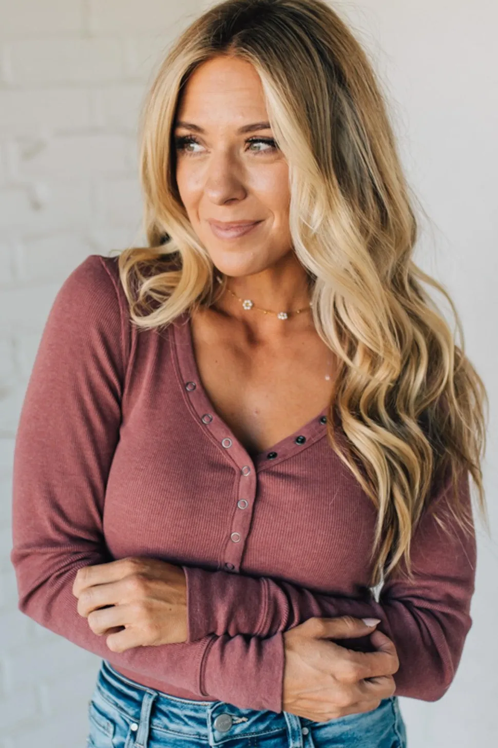 Quiet mornings. Cool afternoons. Long walks, coffee stops, and everything in between. The Ribbed Snap Henley is the kind of piece you forget how often you reach for—until laundry day. Designed with a soft ribbed knit and just the right amount of stretch, this top hugs gently without clinging. The snap-button neckline gives you styling options (leave a few undone for that effortless touch), while the worn-in feel makes it feel like it’s been in your closet forever.