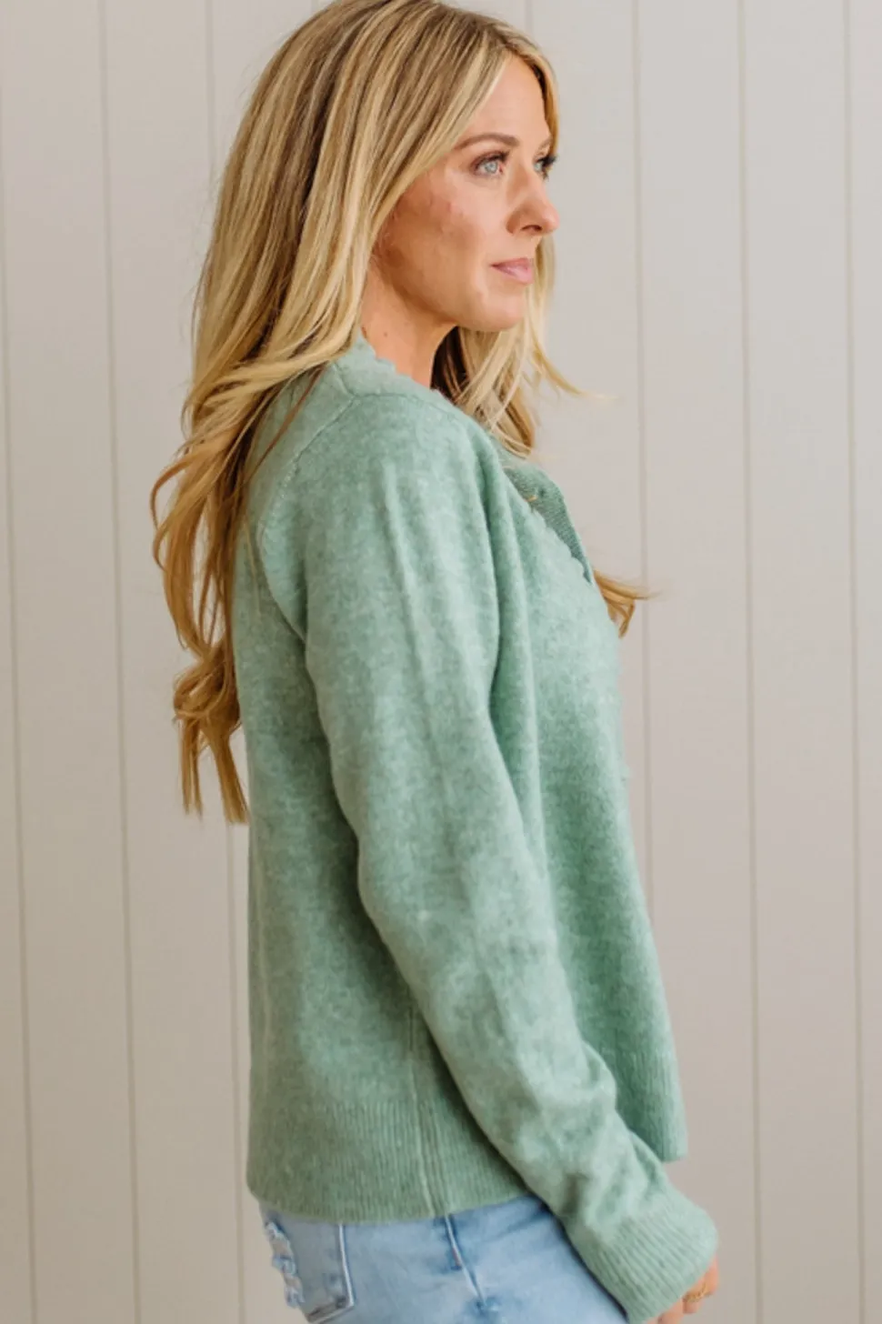 It buttons all the way down (wear it open or closed), with full-length sleeves and a classic crew neck. The fabric blend is warm but breathable, stretchy but structured—basically, it nails that “not too thick, not too thin” balance you crave year-round.