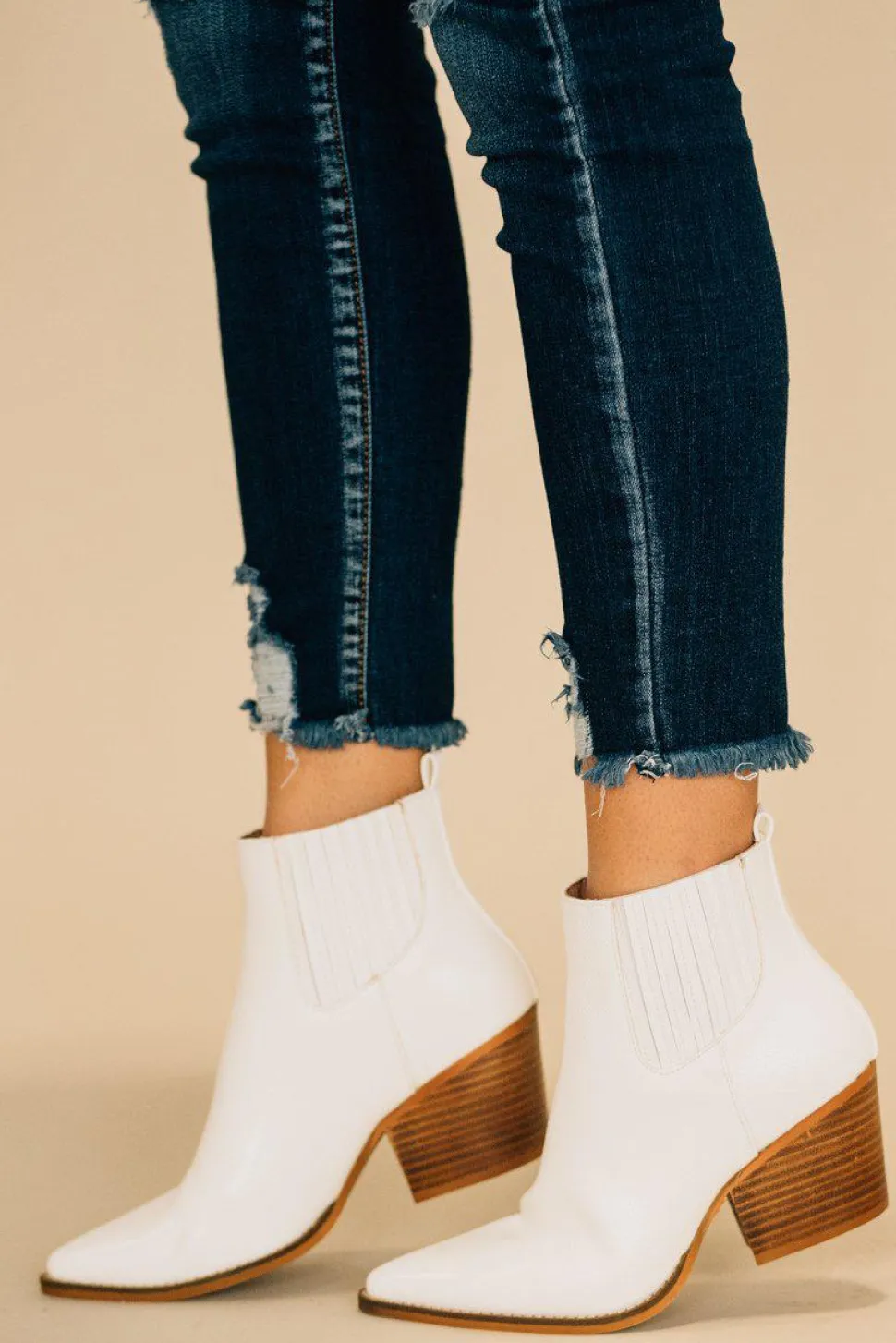Pointy toed, ankle booties with an all over bold faux snakeskin texture!