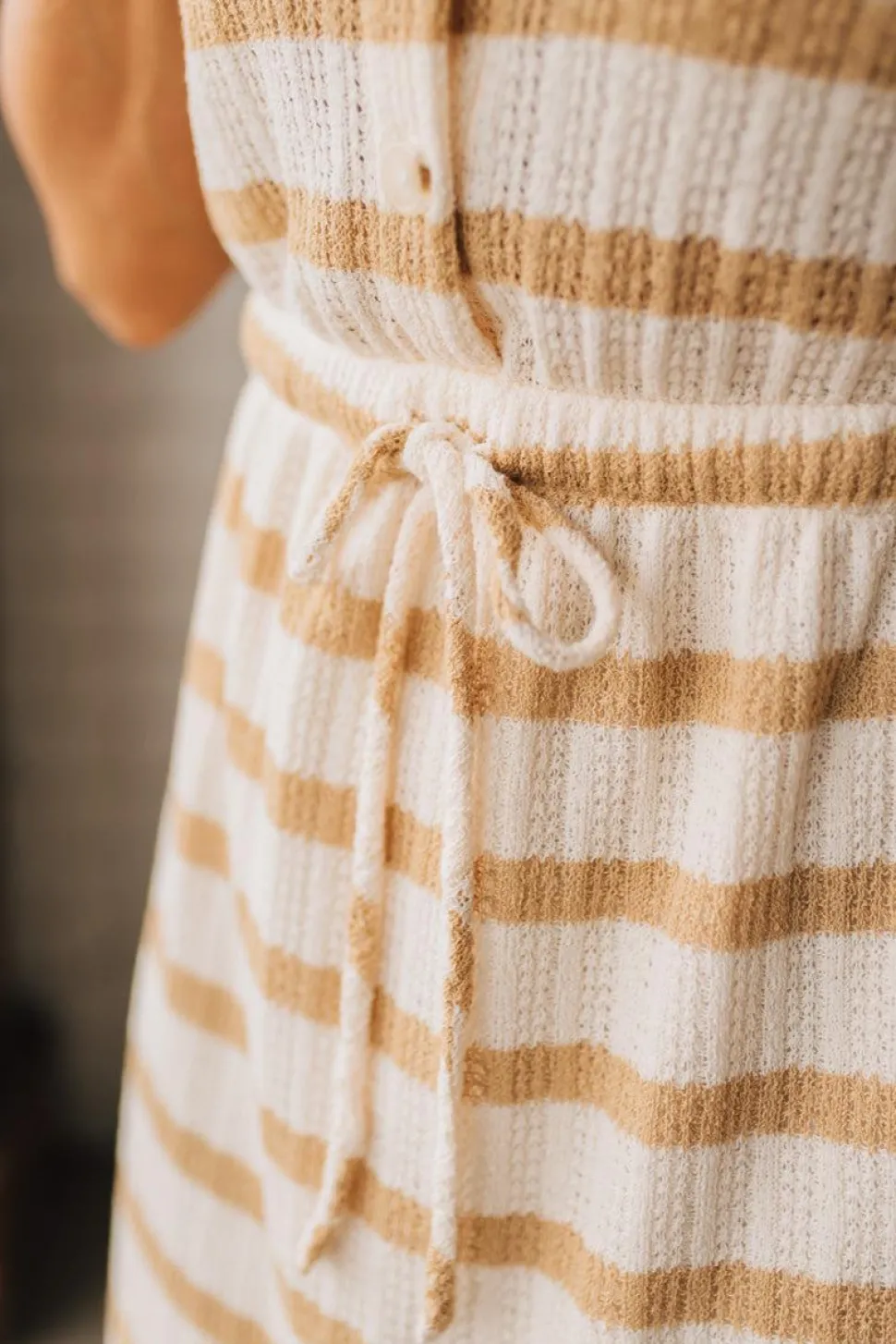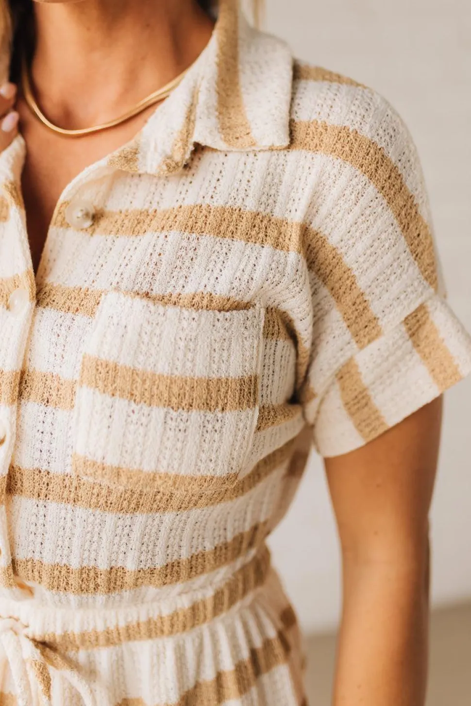 Get ready to button up in style with the Tenna Tie Waist Striped Dress! This playful collared mini dress features a stretch waist with adjustable drawstring for a comfortable fit, and side pockets for added convenience. Perfect for any casual occasion, this dress is a must-have addition to your wardrobe.