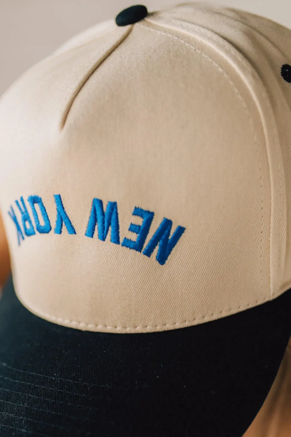 Turn your fashion game upside down with our Upside Down New York Trucker Hat! This cream hat features bold blue embroidery and a sleek black brim, adding a quirky touch to any outfit. Perfect for showing off your unique style and love for the Big Apple.
