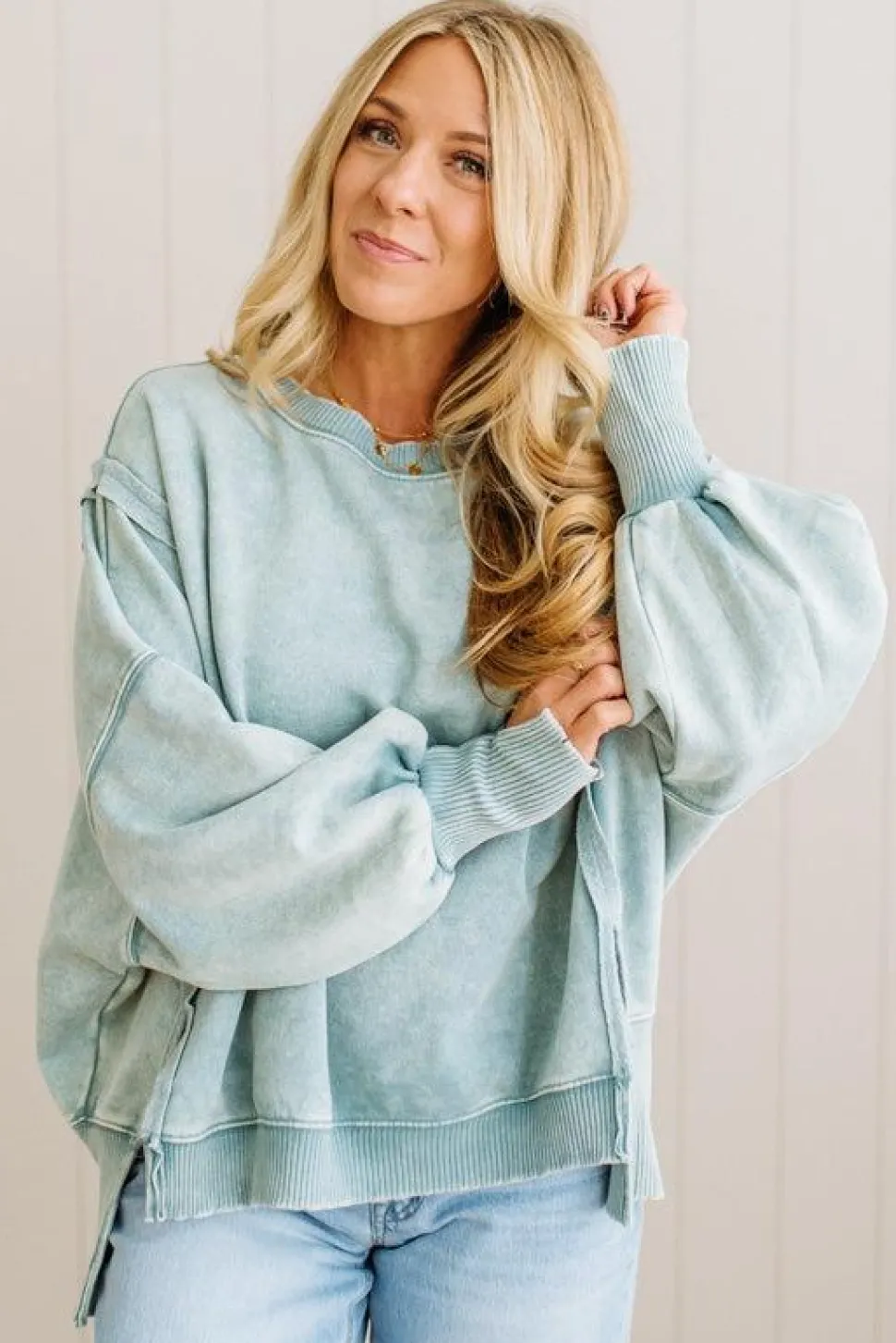 Perfect for busy women who want cozy comfort without sacrificing style during weekend errands, coffee dates, and relaxed days at home. The Wide Neck Drop Shoulder Pullover delivers that lived-in, effortlessly cool vibe with its acid-washed finish and oversized silhouette that feels like your favorite vintage find.