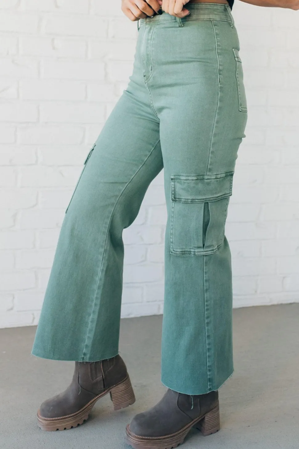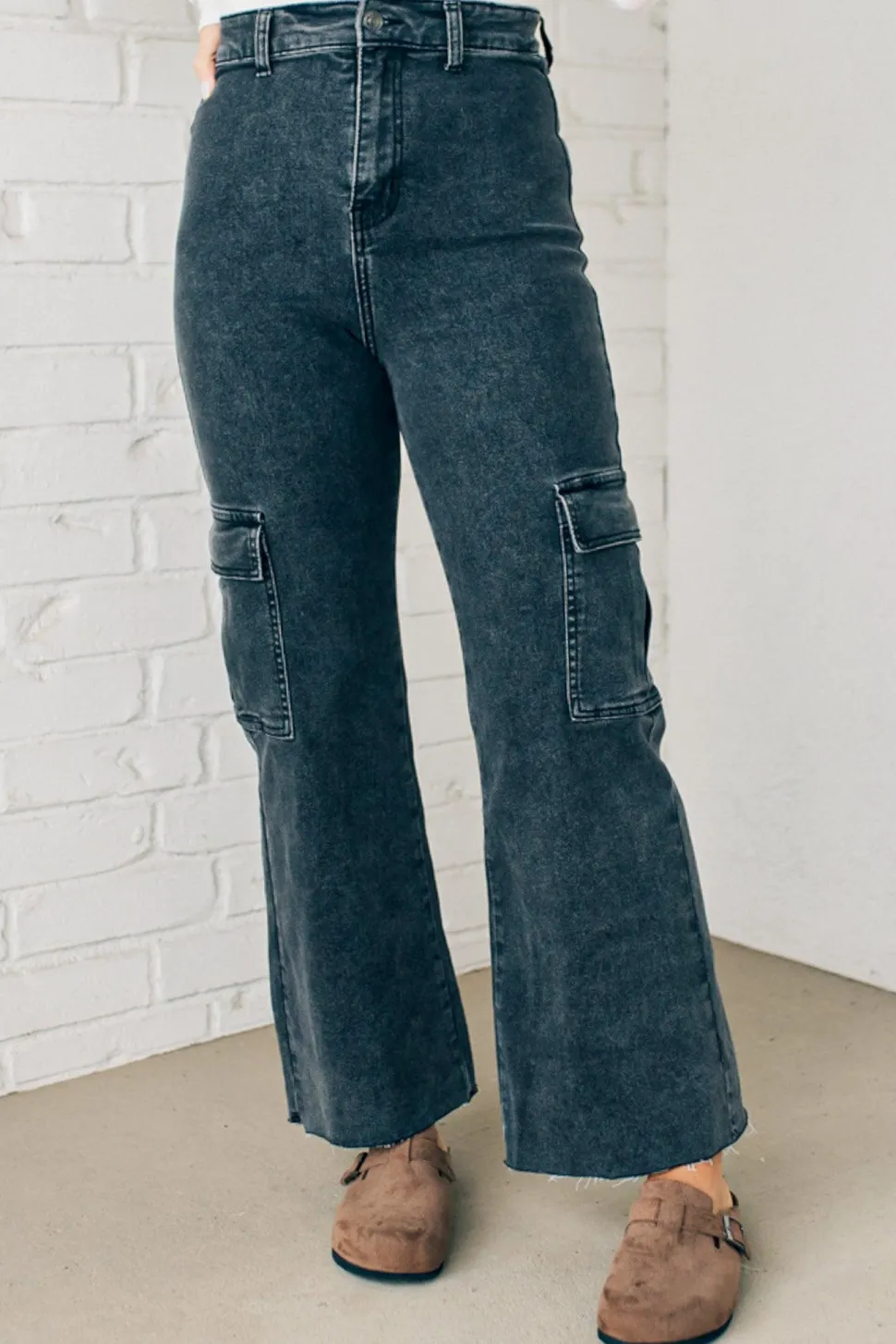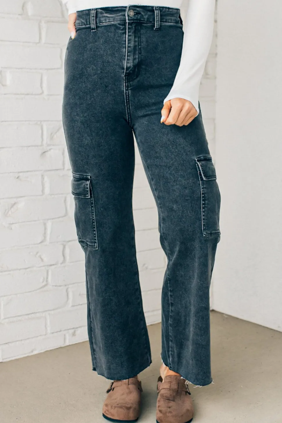 Experience superior comfort and style with Arden High Rise Stretch Cargos. Soft, stretchy fabric provides a form-fitting shape, while the ultra high rise and scissor cut hem create a modern silhouette. Secure your essentials in cargo pockets on the side. Move gracefully with confidence.