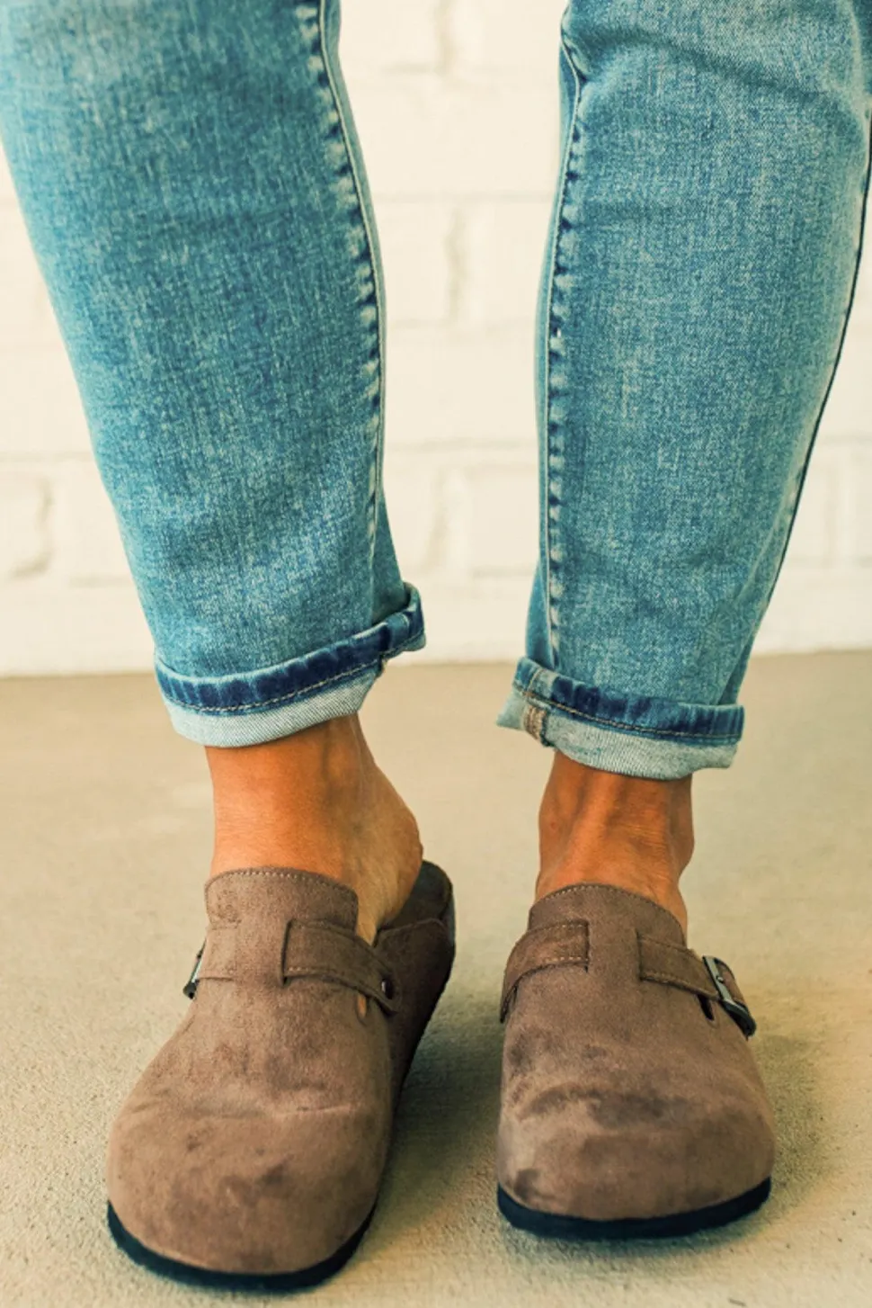 The Berty Slip On Mules are a fashionable and comfortable option for every day. Crafted from soft faux suede and detailed with a cute side buckle, they provide a roomy wide width and easy on and off design. Perfect for work, play or a night out.
