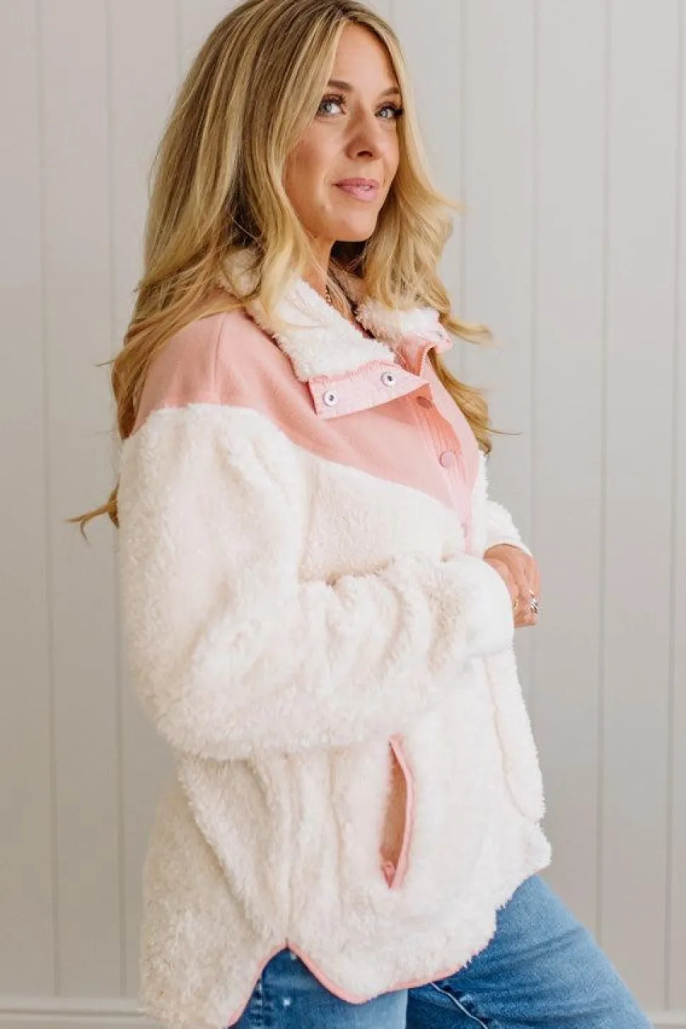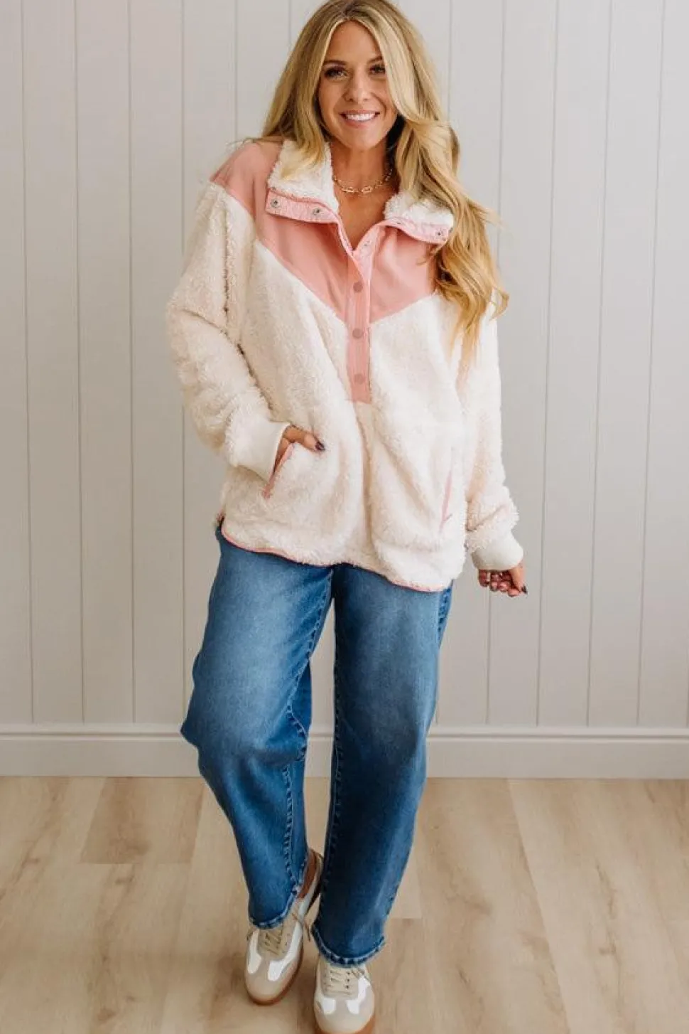 Ready to upgrade your cozy wardrobe? Add the Blocked Sherpa Pullover to your collection for effortless warmth and style that works from morning coffee runs to evening gatherings. Shop now at our boutique.