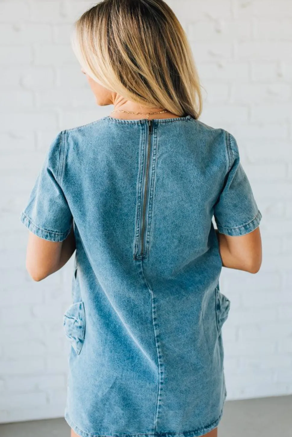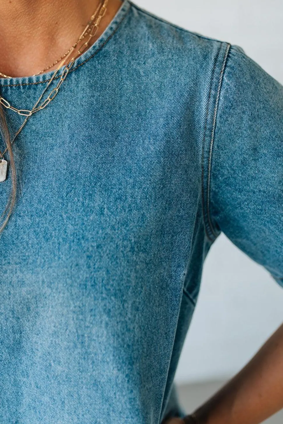 She’s sweet—but she’s got an edge. This is that denim dress. The one that says “I woke up cute” without even trying. Clean shift silhouette. Washed-down blue that hits just right. And the bow? A perfectly placed contradiction—soft, flirty, and totally unexpected.
