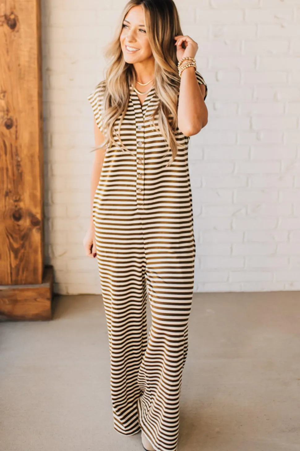 Unleash your fun and carefree side with the Charly Striped Jumpsuit. Made with stripe knit fabric and featuring a button closure and drop shoulder design, this jumpsuit offers a comfortable and playful look. With side pocket details and a loose fit, you’ll be ready to take on whatever the day brings with a wide leg style.