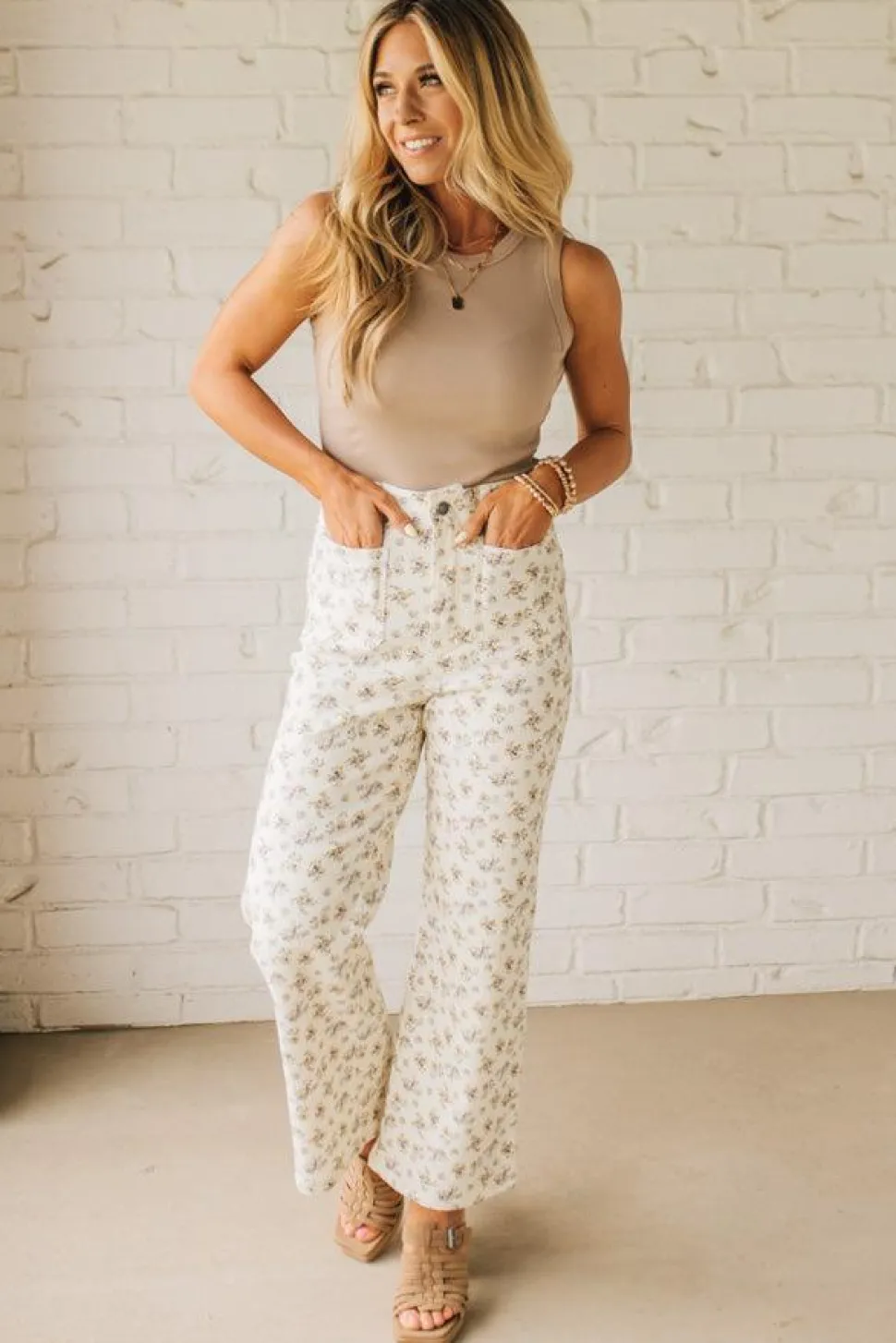 Sweet, Stretchy, and Made to Flirt! You know that feeling when your outfit just gets the vibe? These jeans are that. Whether you’re browsing blooms at the Saturday market or heading to drinks under string lights, the Ditsy Floral Cropped Wide Leg Jeans bring all the playful, girly charm with none of the fuss. Soft stretch denim (yes, they’re actually comfy) hugs at the high waist, then flows into a breezy wide leg that hits just right at the ankle. The ditsy floral print is subtle, sweet, and a little nostalgic—like summer in fabric form. And the patch pockets? Big enough for your phone and your lip gloss.