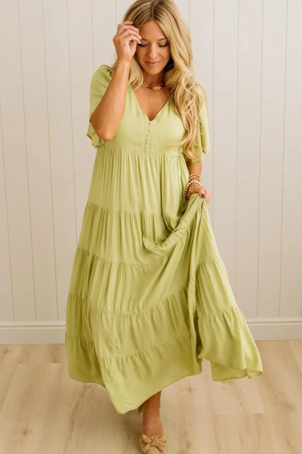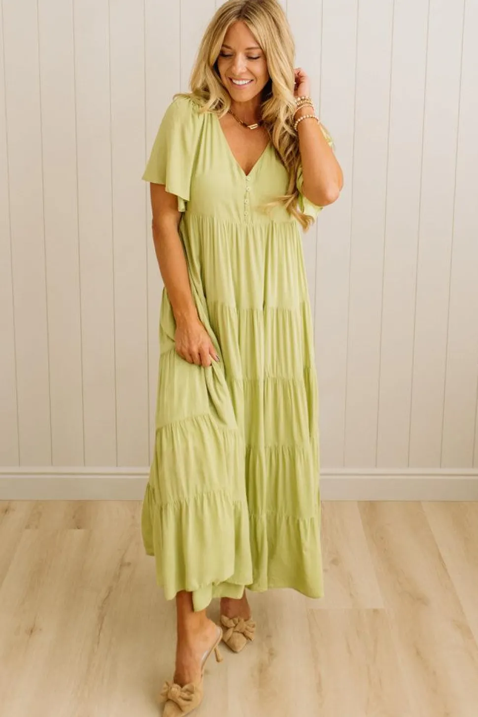 Perfect for busy women who need comfortable, versatile pieces that transition from morning errands to evening gatherings without a second thought. The Emmi Tiered Maxi Dress in soft matcha green gives you an effortlessly polished look that feels as good as it looks, solving the daily struggle of wanting to look put-together while staying comfortable all day long.