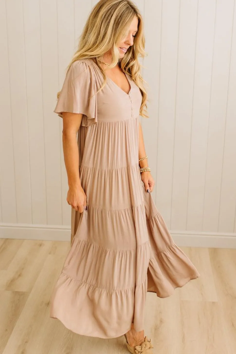 - Fabric: Light and flowy maxi dress features buttery soft modal fabric, functional button front, flutter sleeves, and lining – machine wash warm and hang to dry for best care