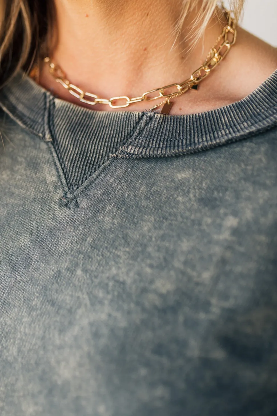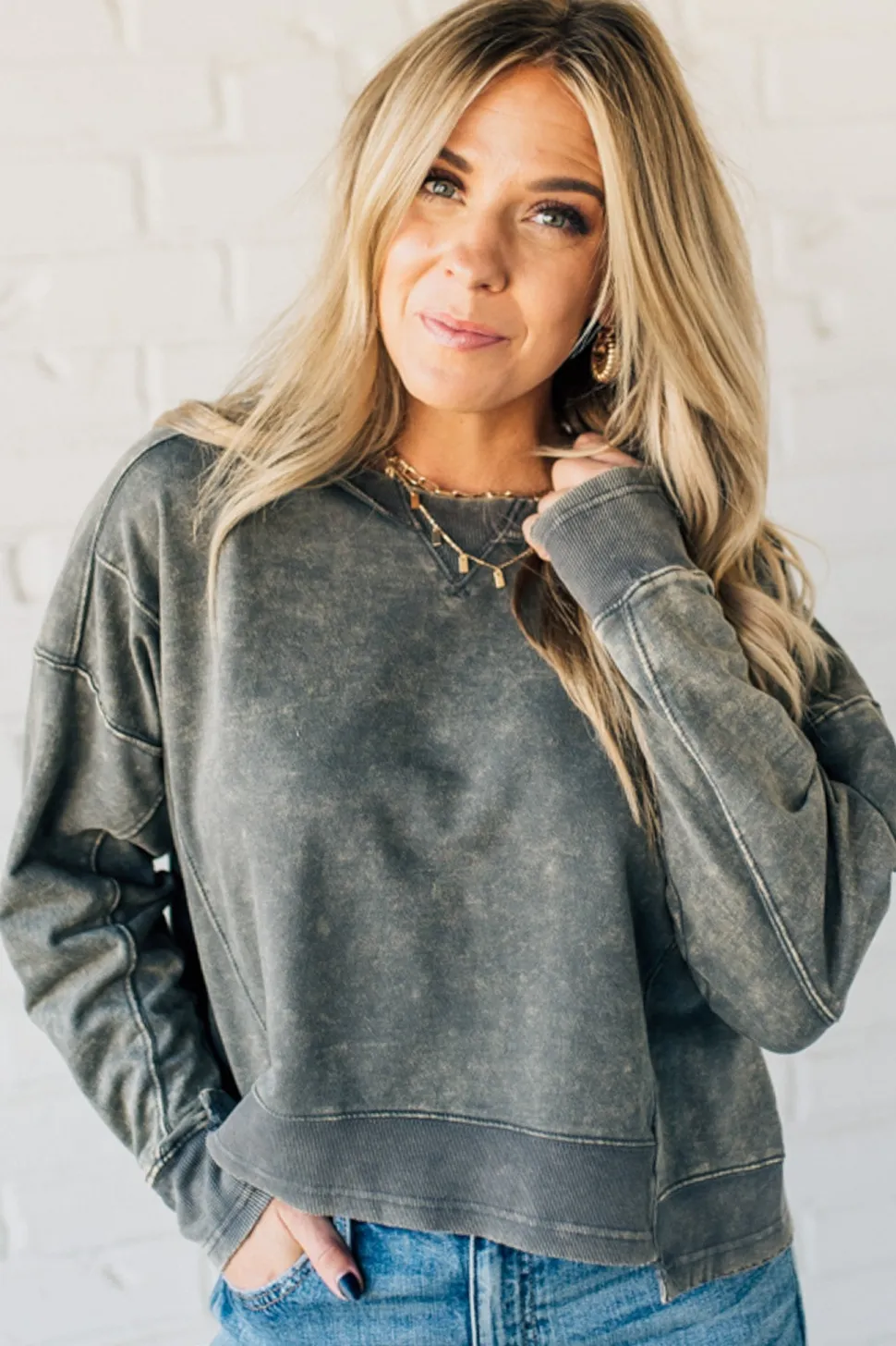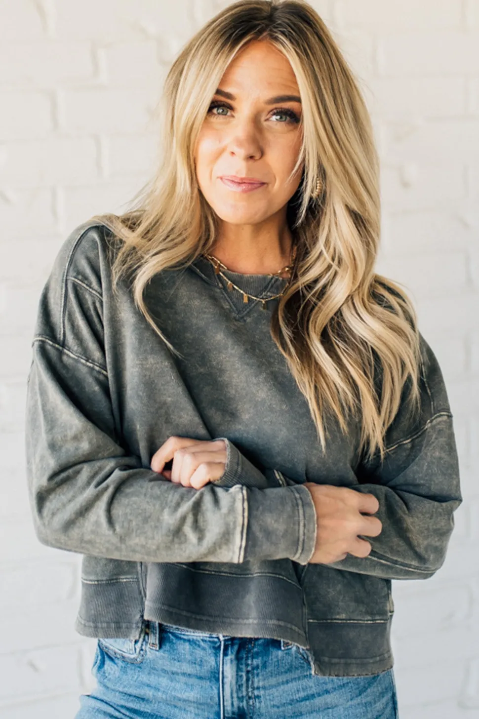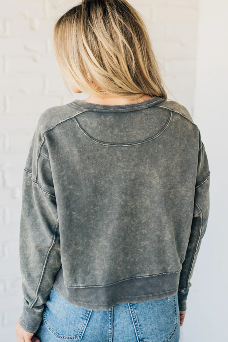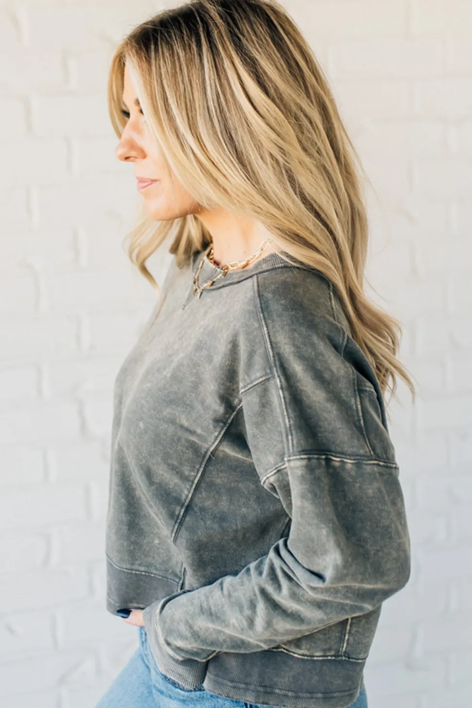 Add some edge to your wardrobe with the Everly French Terry Pullover. Featuring a unique acid wash and raw edge details, this waist-length pullover is perfect for any fashion-forward individual. Its uneven hem adds a touch of unconventional flair. Get ready to rock this versatile and trendy piece!