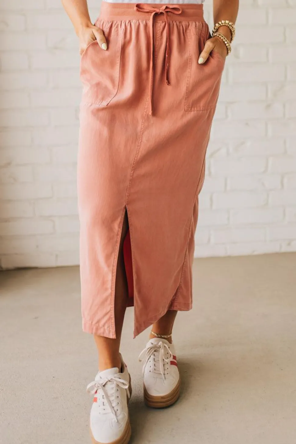 This is what happens when utility goes undercover as cute. The Everyday Cargo Midi Skirt is your low-effort, high-rotation hero—made for errand runs, iced coffee hauls, travel days, and those “I want to look put together but feel like I’m in sweats” moods. Crafted in a breathable Tencel blend, it’s soft with just enough structure to hold its shape. The adjustable drawstring waist keeps things comfy (read: you can sit cross-legged in this), while square patch pockets and a center slit add subtle function and style. Spoiler: you’re gonna want more than one.