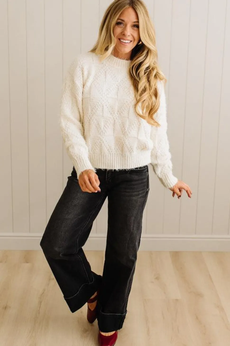 Ready to upgrade your cozy sweater collection? Add the Eyelash Finish Checkerboard Sweater to your wardrobe for touchably soft comfort that looks intentional and polished. Shop now at our boutique.