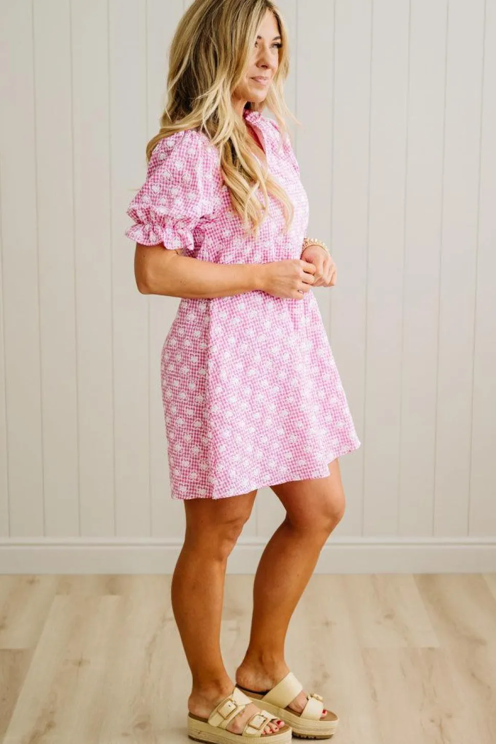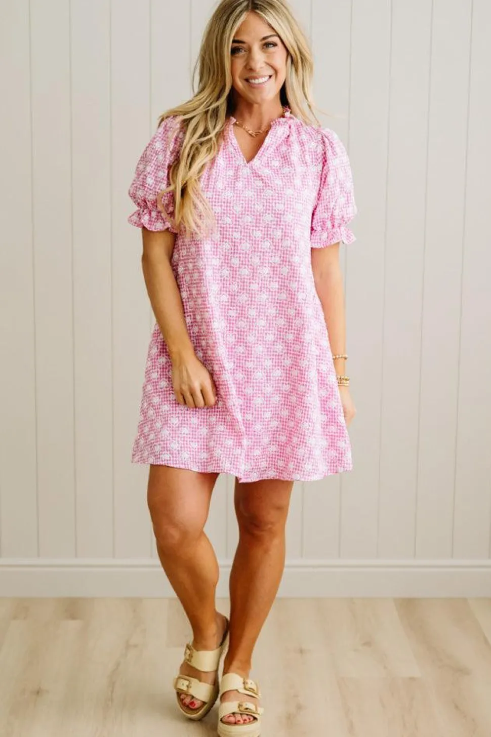 This dress is a love letter to all things sweet and vintage. The Gingham and Hearts Puff Sleeve Shift Dress brings a burst of retro charm with its pink gingham print and embroidered heart details—each one laced with little floral bouquets. It’s flirty, it’s feminine, and it’s the perfect “just wear the dress” kind of moment.