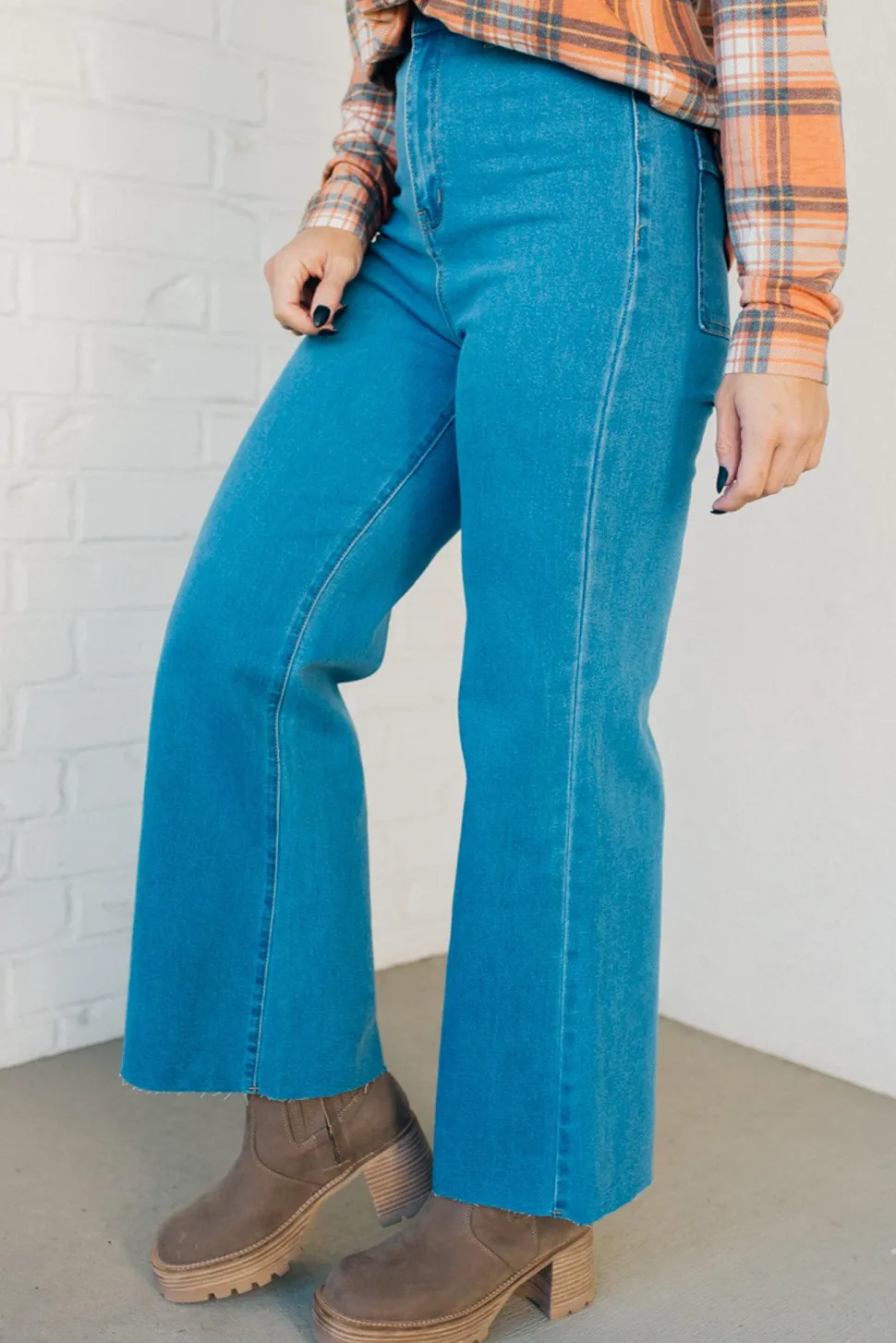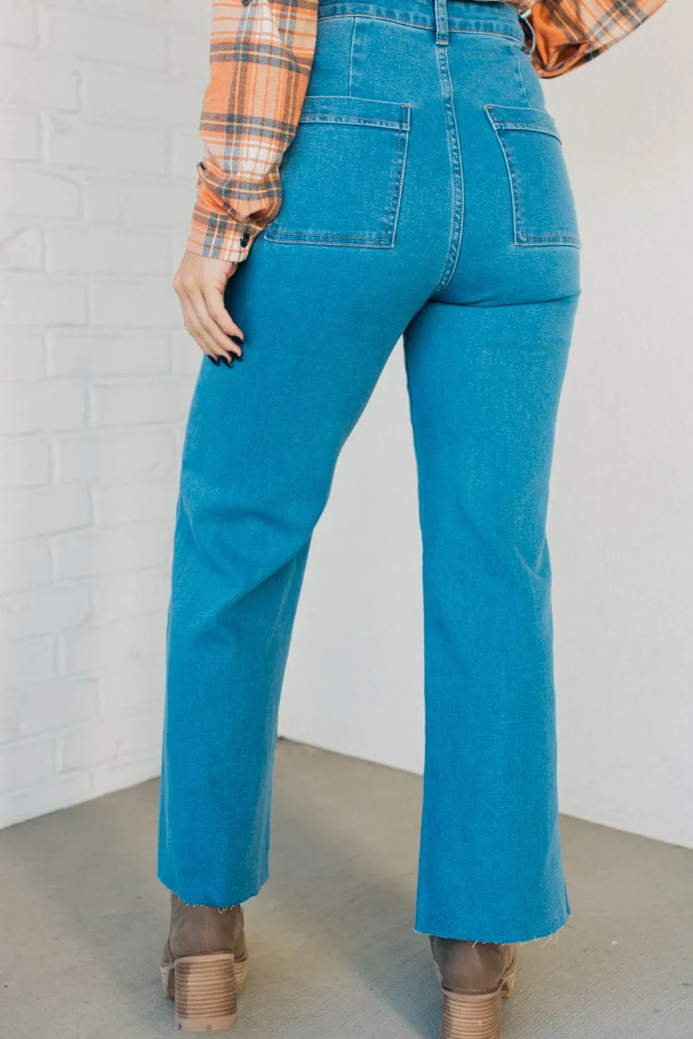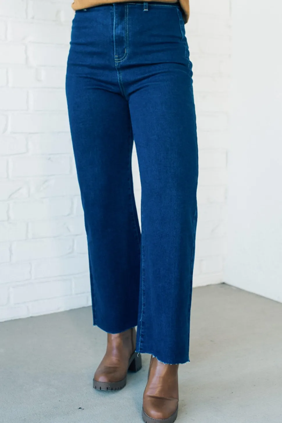 The Greta High Rise Wide Leg Denim offer a flattering fit and timeless style. Crafted from a stretchy material with an ultra high waist, slim cut, and wide leg, these pants provide a comfortable fit and chic silhouette. Features include belt loops and a classic blue finish.