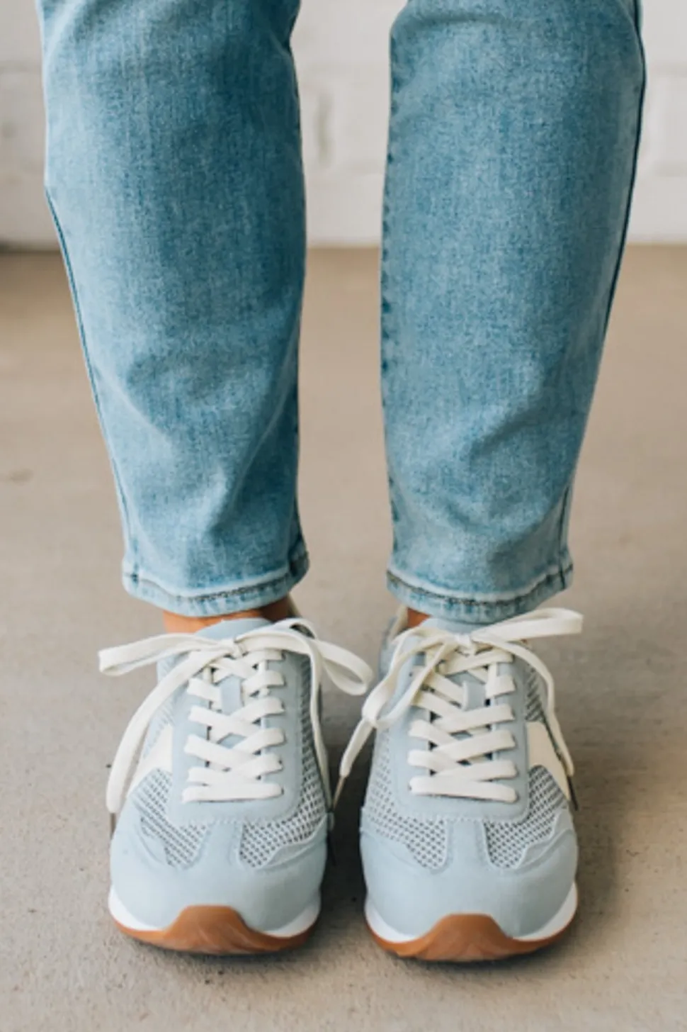 Get your step on with our Jenna Mesh Sneakers in a stylish light blue color! With a training stripe design, rubber sole contrast, and white laces, these sneakers will add a touch of playfulness to your workout routine. Say goodbye to boring old sneakers and hello to fun and fashionable fitness!