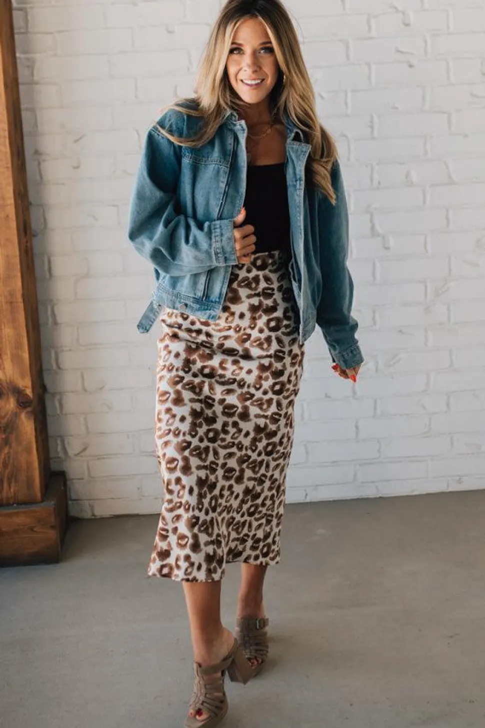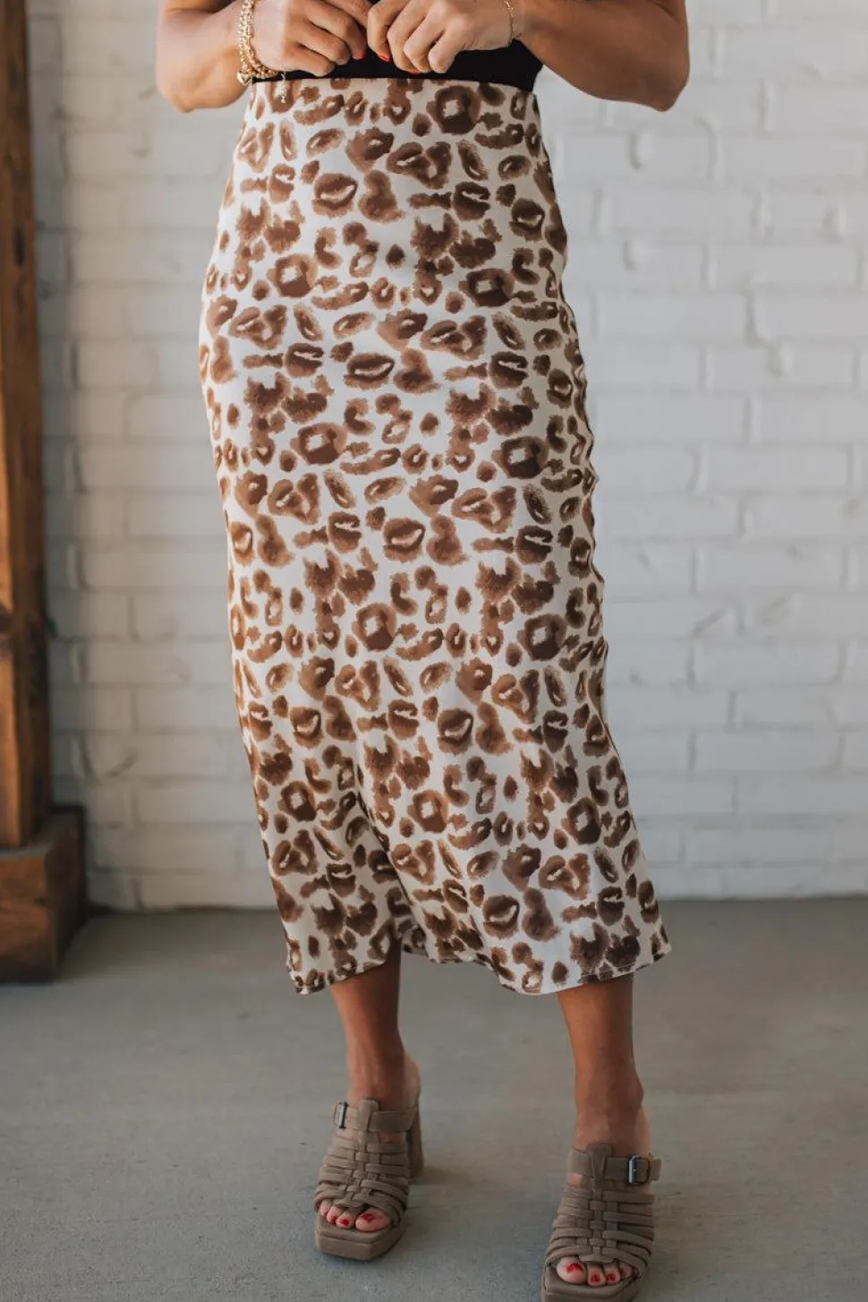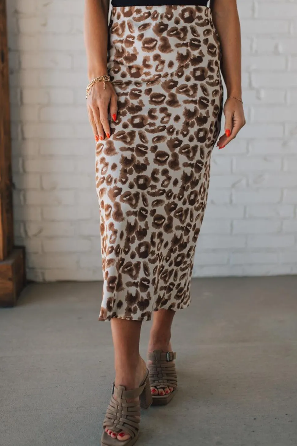 Embrace your wild side with the Jenny Leopard Satin Midi Skirt. Made from animal printed satin fabric, this skirt is cut on the bias for a flattering fit and has an elastic waist for comfort. The midi length adds a touch of sophistication to this playful piece. Go ahead, unleash your inner jungle cat in style!