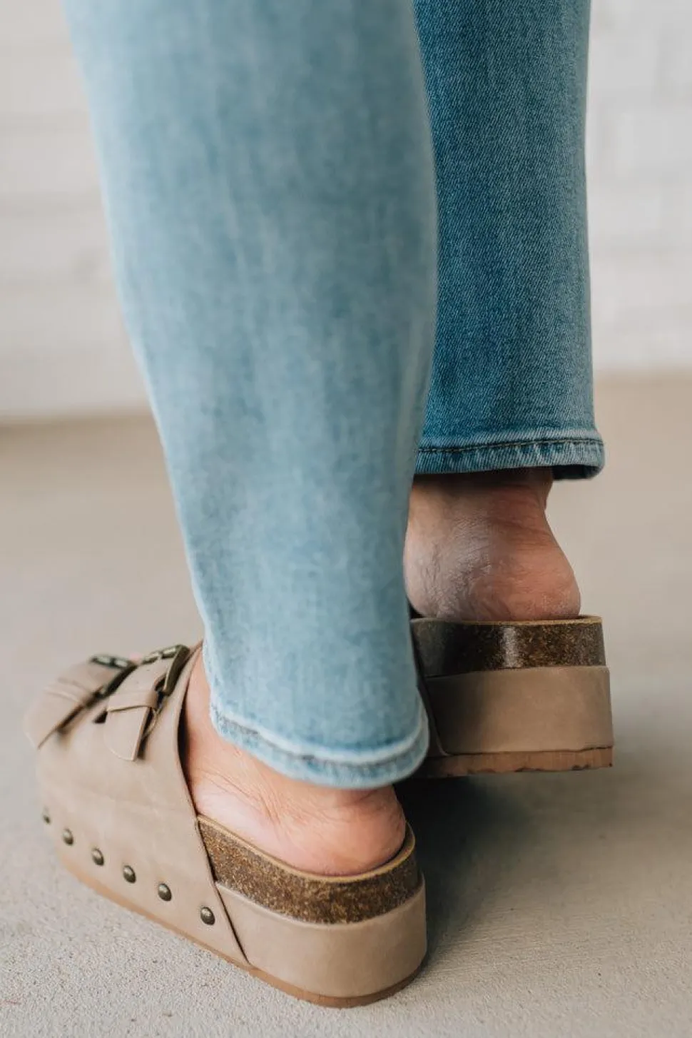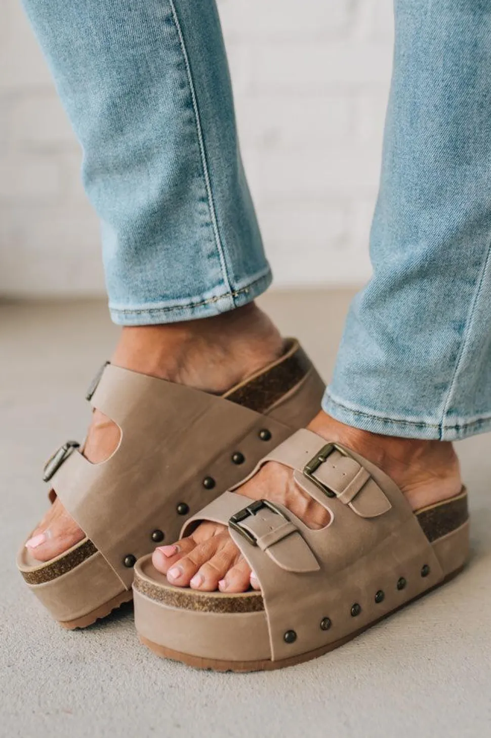 These are not your average slides. The Jeri Studded Platform Slides hit that perfect mix of street-style attitude and throw-on-and-go comfort. Double straps in a rustic faux nubuck bring that broken-in vintage texture you love, while chunky studs and a bold platform sole give them bite. Think: off-duty model meets fall market stroll. The molded footbed keeps things easy on your feet, while the 2.25″ cork platform gives you just enough lift to feel like you tried—without actually trying.