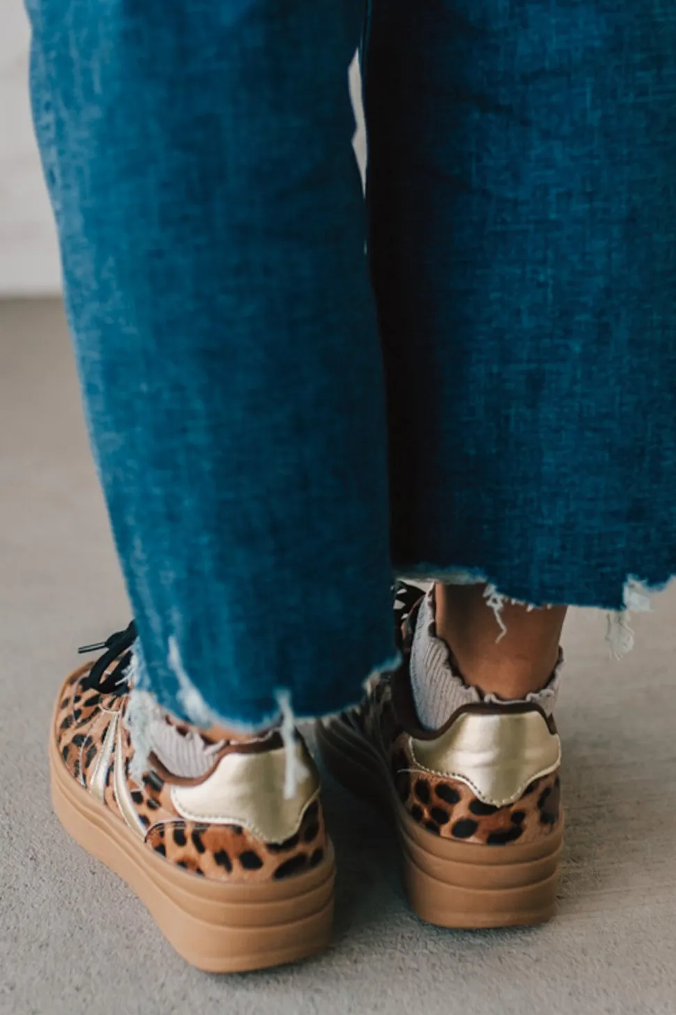 Step up your sneaker game with the Kimmy Double Stripe Sneakers. These leopard print platform sneakers feature a playful pop of black and gold with a double stripe design. Comfort and style meet in the perfect combination. (Pair with any outfit for a quirky and fashion-forward look!)