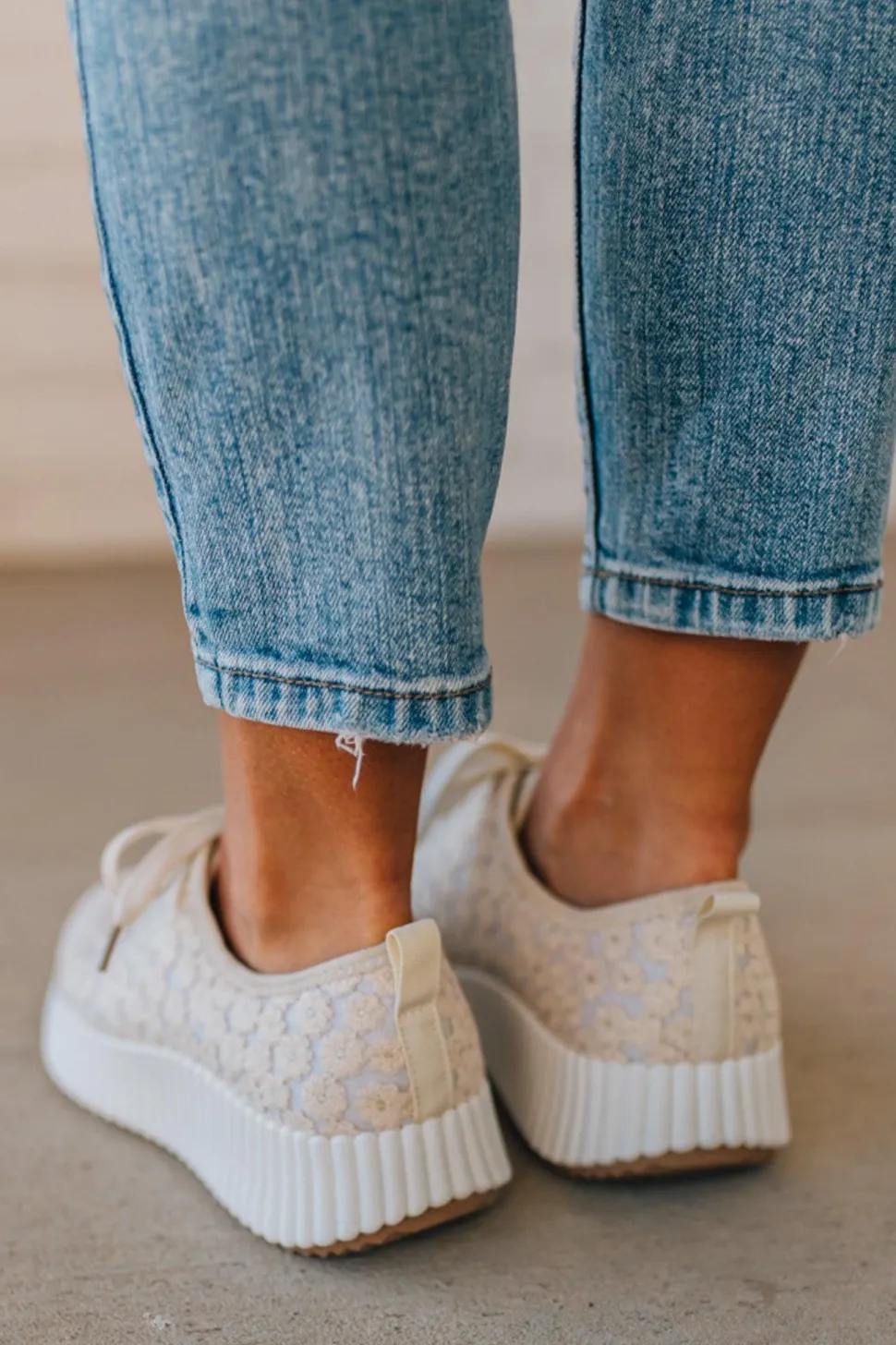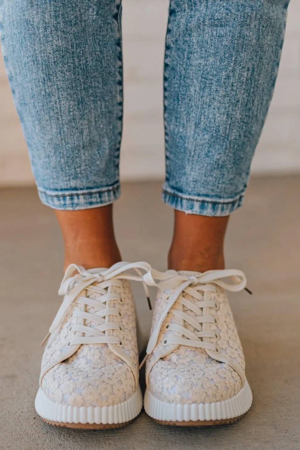 Unleash your inner fashionista with our Laura Floral Lace Sneakers! These Ivory Crochet Lace Platform Sneakers are perfect for adding a touch of elegance to your casual look. The white ribbed sole adds a sporty twist, making these sneakers a versatile and stylish choice for any outfit.