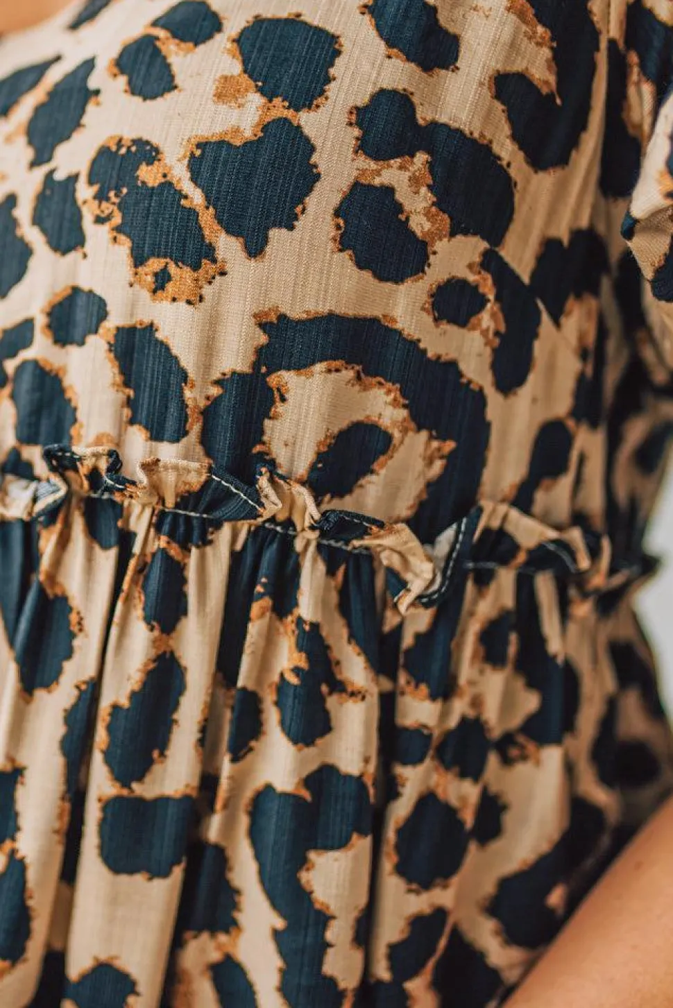 Leopard Tie-Back Puff Sleeve Dress — Sweet From the Front, Sassy From the Back. Some dresses whisper. This one flirts. The Leopard Tie-Back Puff Sleeve Dress is your go-to when you want to bring the charm and still cause a little stir. With soft puff sleeves, a flattering empire waist with ruffled seaming, and a flirty open-back cutout tied in a bow, this dress is made for date nights and golden hour moments. The nylon-rayon blend drapes beautifully without clinging, and patch pockets give it bonus points for real-life wearability.