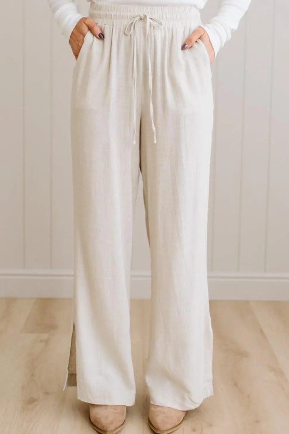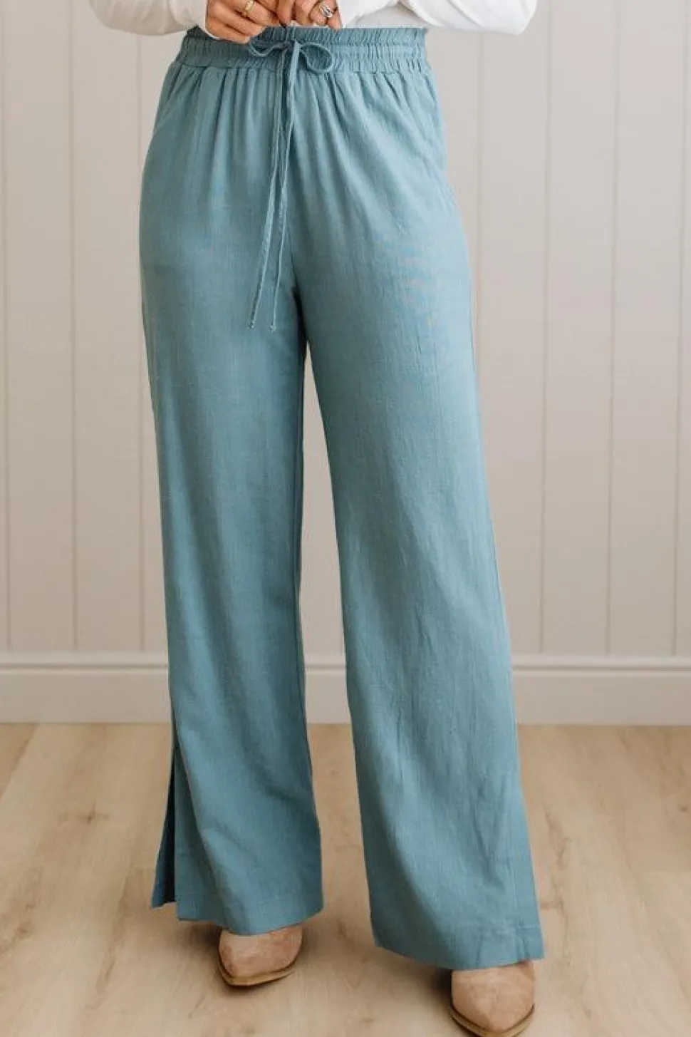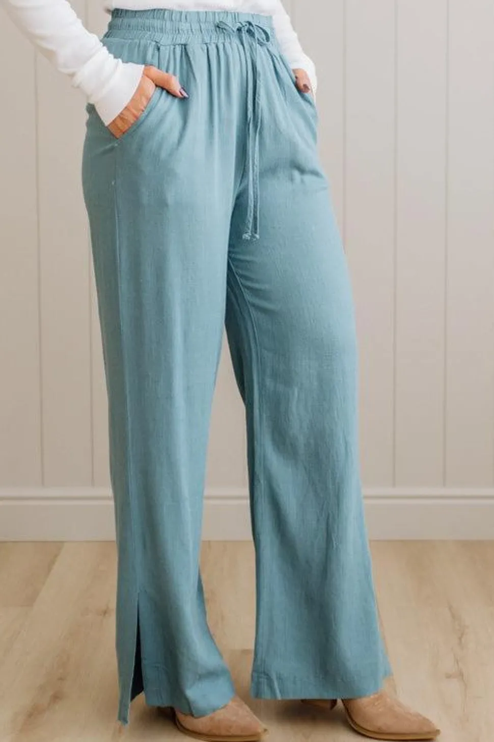 Made for Movement + Moments! Weekend mornings. Slow coastal strolls. That in-between season where the breeze has just the right chill. These are the pants you’ll wear on repeat—from the airport to the pumpkin patch. The Linen Blend Drawstring Pants are the definition of laid-back polish. Designed in a soft, breathable linen blend with a wide leg and subtle side slits, they move with you—never against you. The wide elastic waistband with drawstring lets you find your perfect fit, while deep pockets keep it functional (because yes, your phone should fit too).