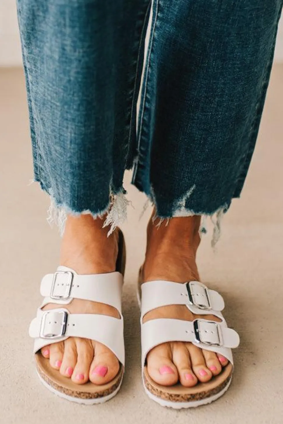 Slip into style and comfort with Maura Double Strap Slides. Designed for the fashionable and the practical, these buckled slides offer anti-slip soles, a backless design, and a platform for added height. Perfect for everyday wear or a day at the beach.