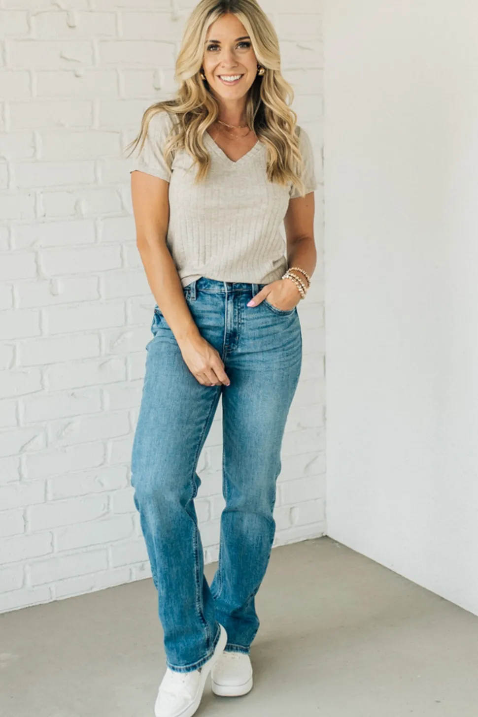 Perfect for adding some trendy flair to your wardrobe! Get ready to rock this Miles Brushed Ribbed V-Neck Tee! With its unique vertical ribbed design and soft brushed finish, this short sleeve V-neck top is guaranteed to be your new favorite. 92% Rayon 8% Spandex