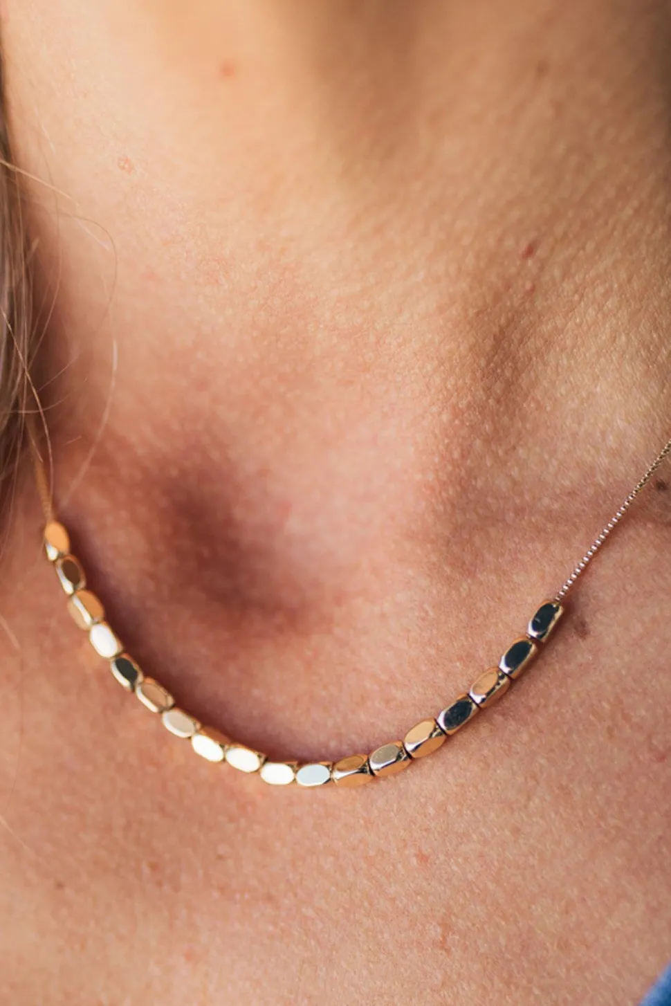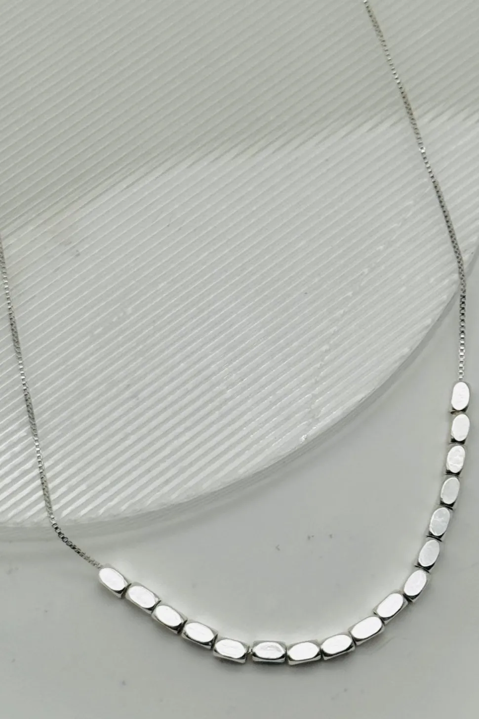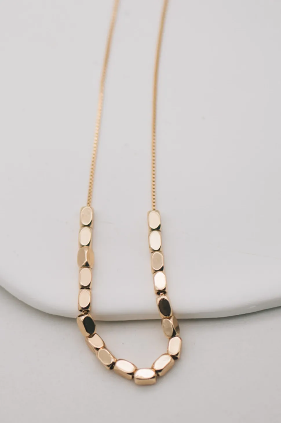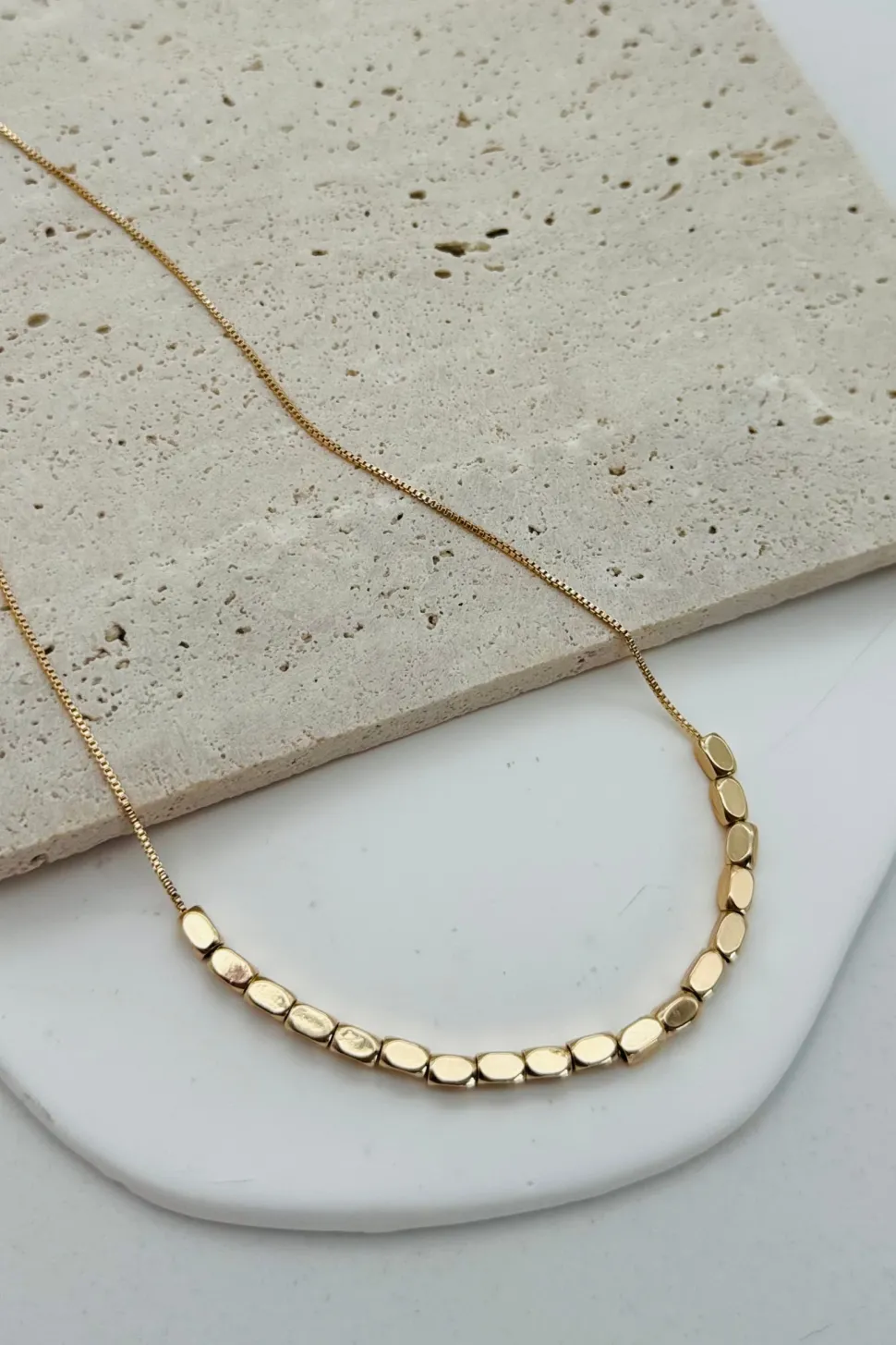 Add some minimalistic charm to your outfit with this beaded necklace! The delicate brass chain and shiny gold or silver plating give it a smooth and stylish finish. Perfect for adding a touch of elegance without being too flashy.