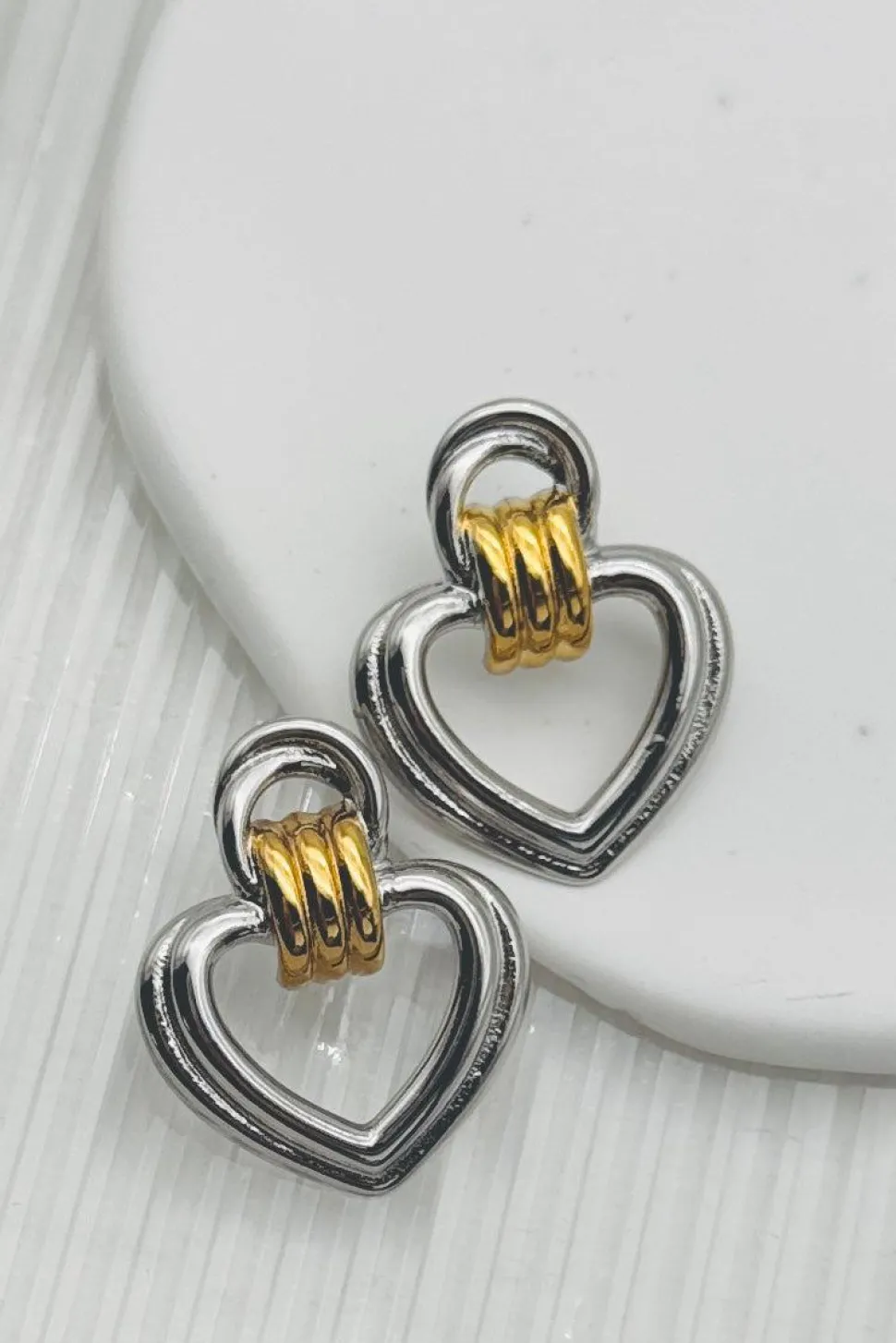 These LUXE Mixed Metal Heart Hoops are love at first sight! With a playful heart hoop design in silver and a touch of gold, these earrings add a hint of quirk to any outfit. Perfect for the fashion-forward and playfully mischievous!